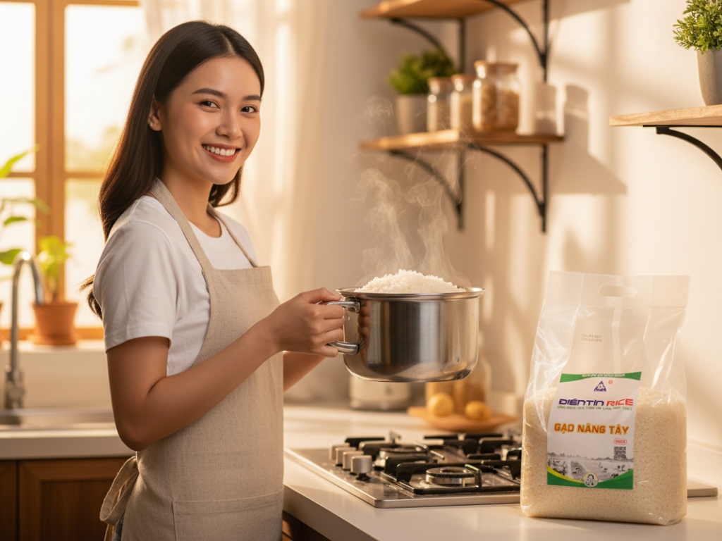 Cơm nấu từ Gạo Nàng Tây R24 Điền Tín thật sự dẻo thơm, ngọt tự nhiên, cả nhà mình ai cũng thích. Mình yên tâm vì sản phẩm hữu cơ, an toàn cho sức khỏe.