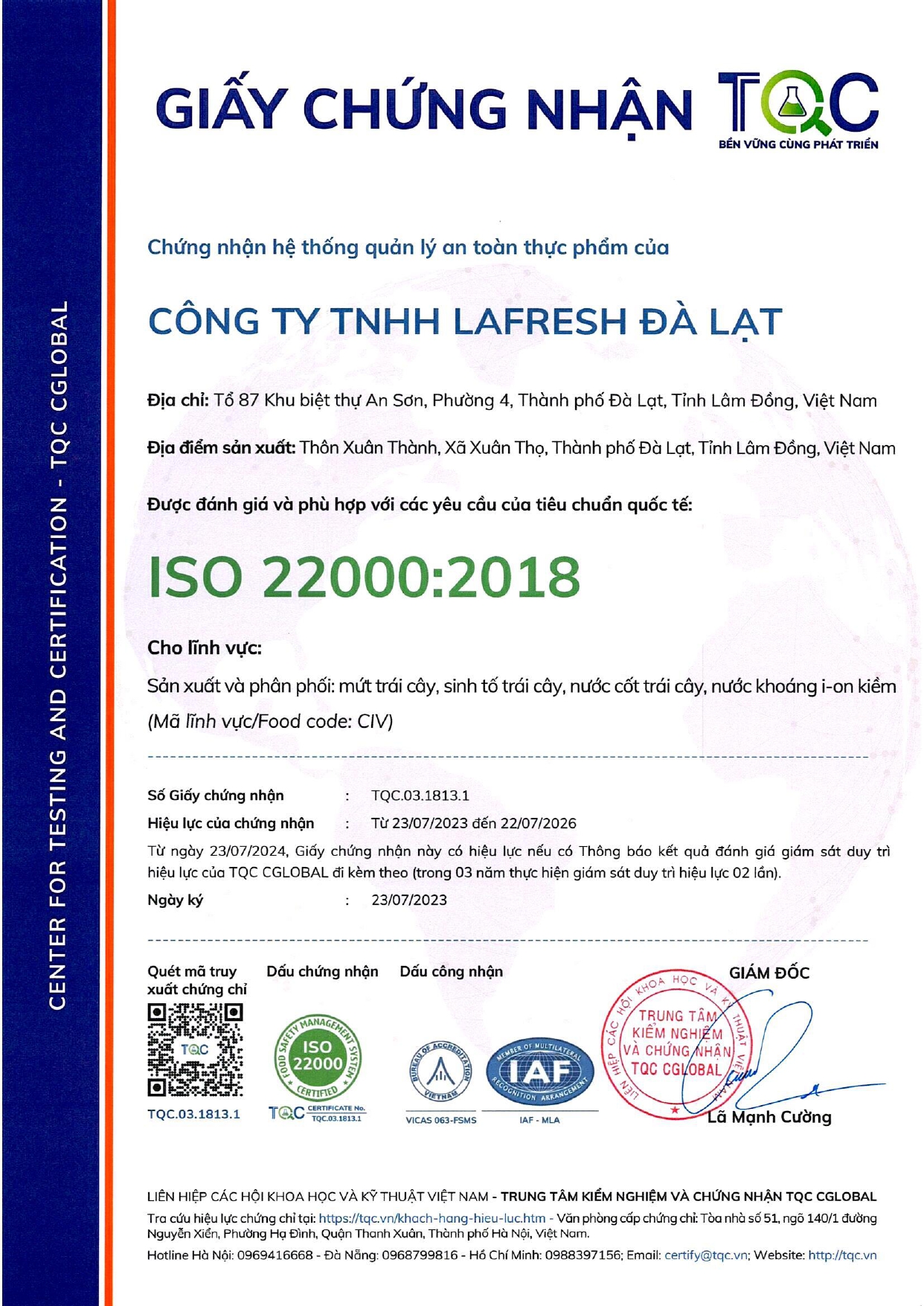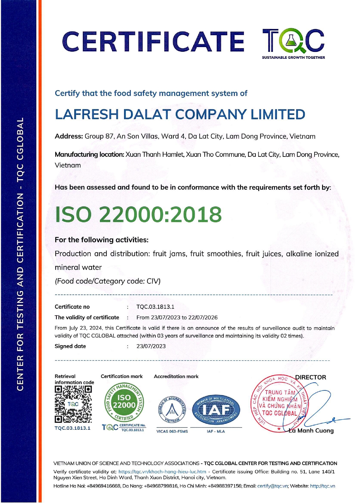 Tên quốc tế: Lafresh Dalat Company Limited