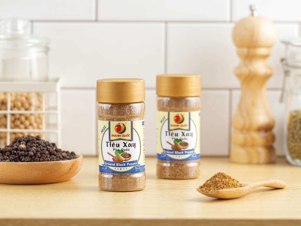 Tiêu Xay Phú Quốc Thanh Quốc 70g, 100% hạt tiêu nguyên chất, không chất bảo quản. Sản phẩm đạt chứng nhận OCOP 4 sao, mang hương vị cay nồng đặc trưng, là gia vị không thể thiếu trong bữa ăn Việt.