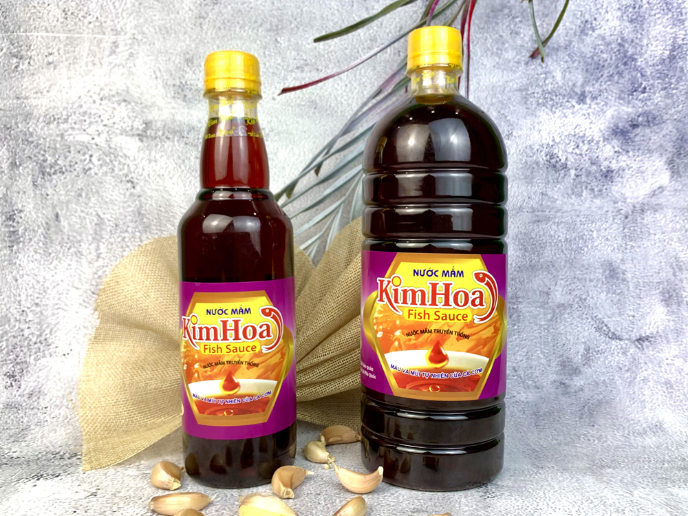 Nước mắm Kim Hoa là dòng nước mắm “Cốt” đặc biệt được ủ chượp theo phương pháp truyền thống với nguồn nguyên liệu là cá cơm thiên nhiên đến từ vùng biển Phú Quốc. Từng giọt nước mắm Kim Hoa đã được chắt lọc ra từ những nguồn nguyên liệu tốt nhất, mang đến cho khách hàng một sản phẩm vừa kết hợp được sự tinh hoa của nước mắm truyền thống và những dưỡng chất sức khỏe mà sản phẩm mang lại. Nước mắm là mặt hàng được sử dụng rộng rãi trong các bữa ăn của gia đình Việt từ xưa đến nay.