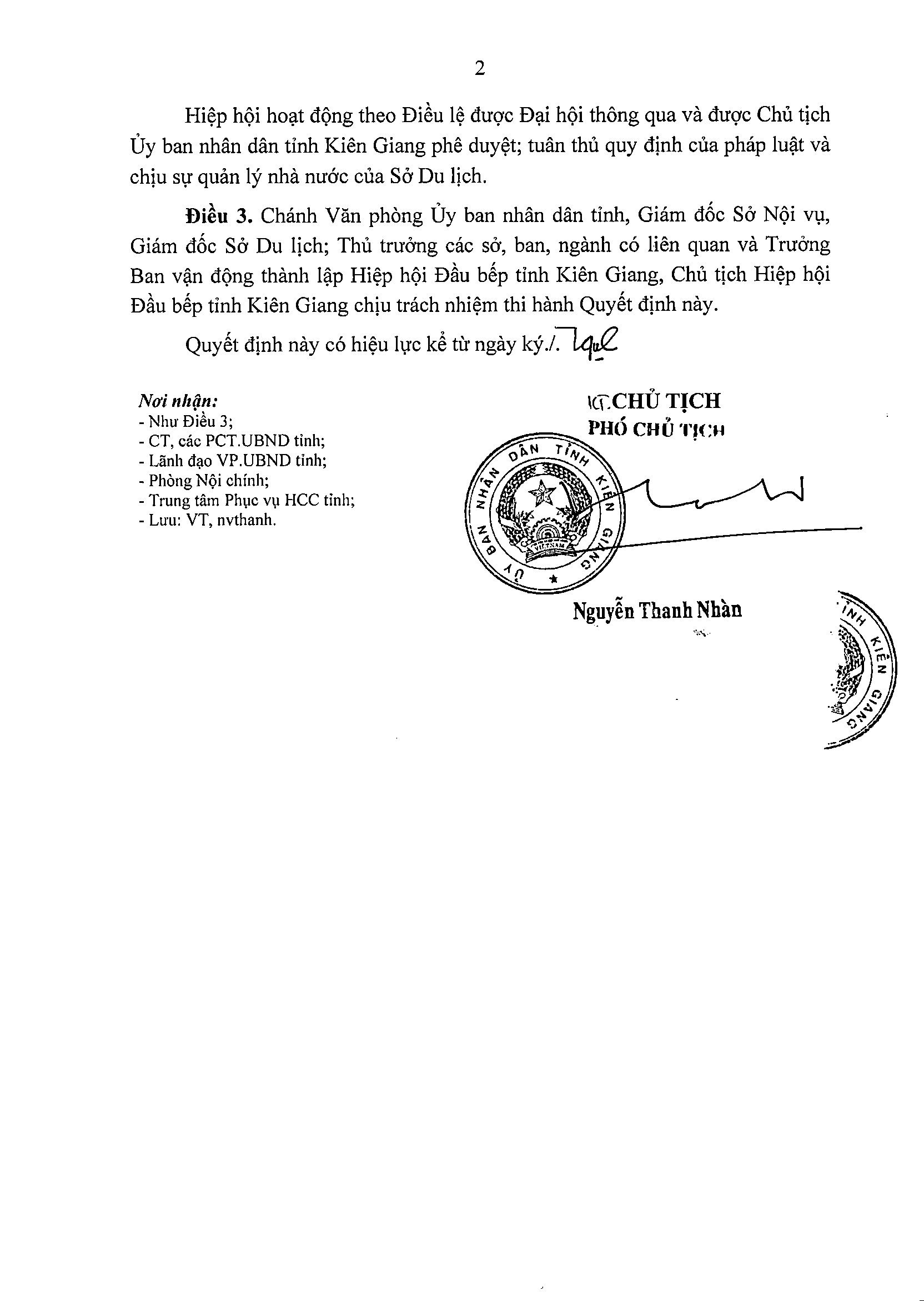 Hiệp hội Đầu bếp tỉnh Kiên Giang là một tổ chức xã hội được thành lập nhằm kết nối và hỗ trợ các đầu bếp trong tỉnh. Hiệp hội được Ủy ban nhân dân tỉnh Kiên Giang cho phép thành lập vào ngày 20/09/2023, với trụ sở đặt tại thành phố Phú Quốc.