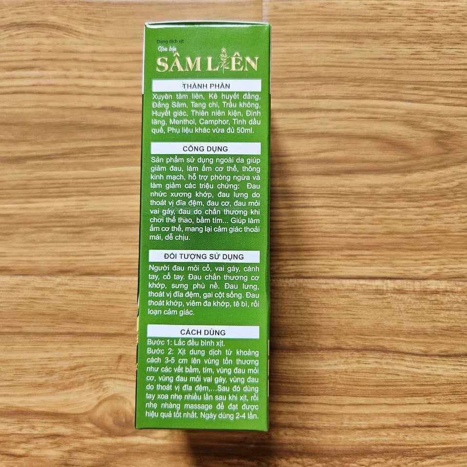 Dung dịch xoa bóp sâm liên là sản phẩm xoa bóp được chiết xuất từ các thành phần vô cùng có lợi cho sức khỏe. Theo Đông y các thành phần trong sản phẩm đều là những thành phần được mệnh danh là thảo dược quý, mang đến nhiều lợi ích cho sức khỏe, được nhiều người tin dùng.