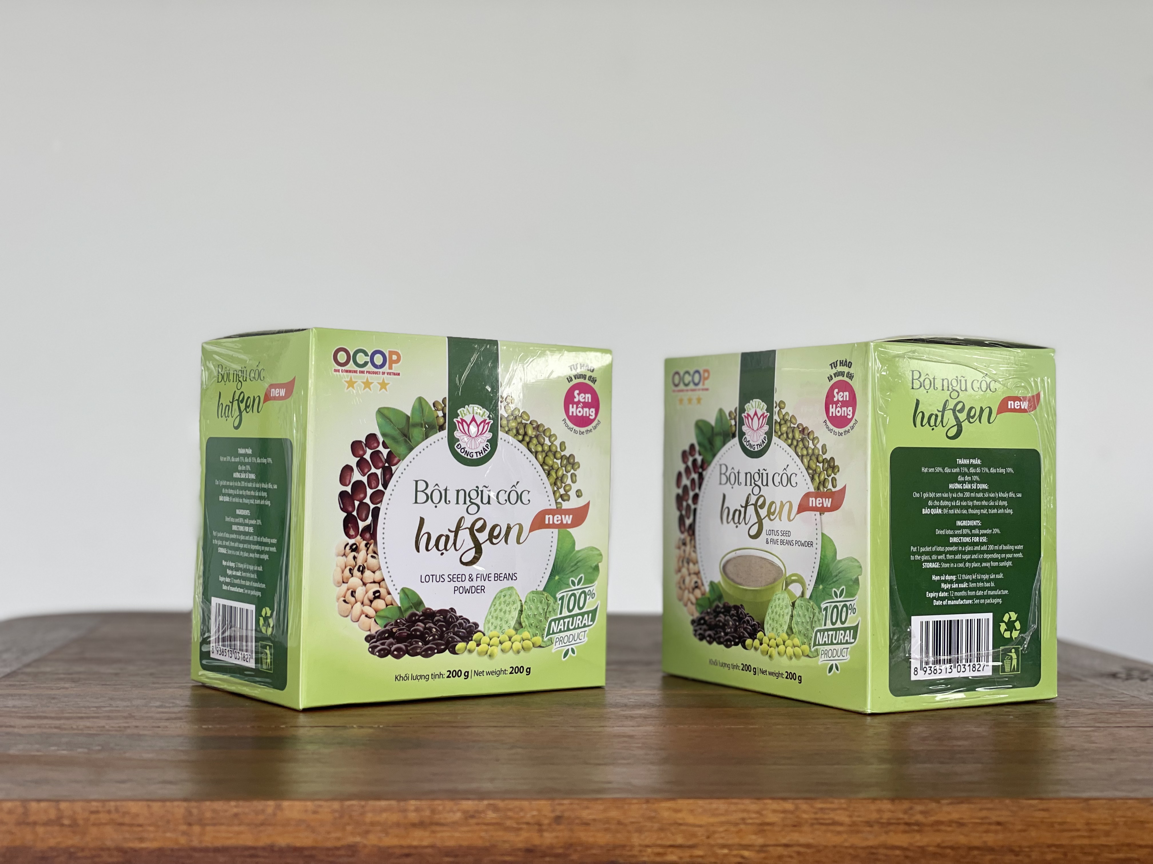 Bột ngũ cốc hạt sen gồm hạt sen và 4 thứ đậu: đậu trắng, đậu xanh, đậu đỏ, đậu nành và hạt sen.