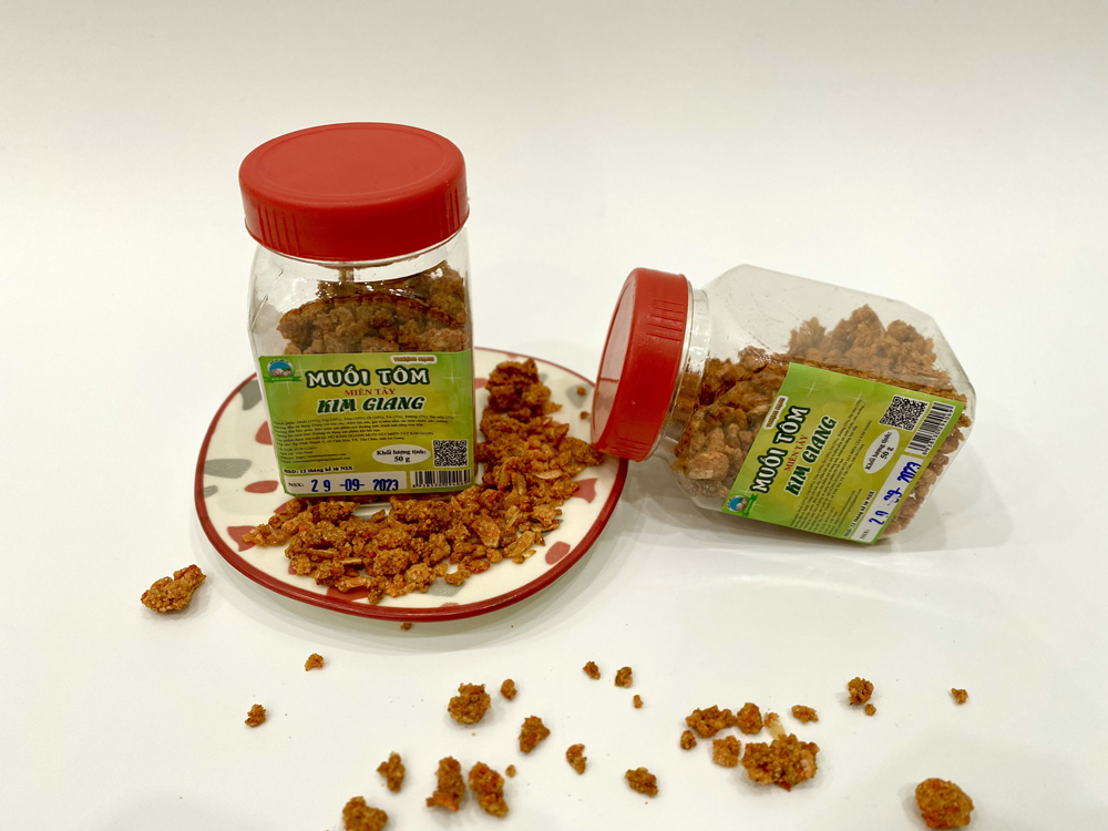 Muối tôm sấy miền Tây Kim Giang có thành phần từ muối, tôm, tép, tỏi, ớt, đường, hạt nêm. Đây là sản phẩm có mùi thơm đặc trưng, hương vị đậm đà, ngọt ngon và có mùi thơm tự nhiên của tôm, hạt muối to, có màu sắc cam, khi nhìn vào vô cùng hấp dẫn. Sản phẩm còn phù hợp cho mọi lứa tuổi sử dụng. Ngoài ra, muối tôm sấy miền Tây Kim Giang còn có quy trình sản xuất đảm bảo an toàn vệ sinh thực phẩm, không chất bảo quản, không phẩm màu, đảm bảo chất lượng an toàn vệ sinh thực phẩm.