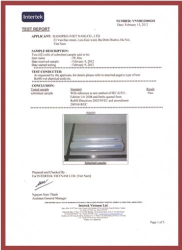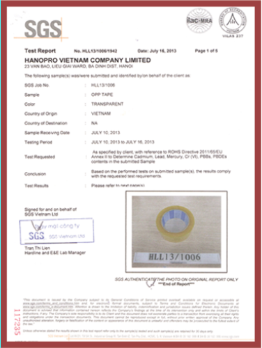 Hệ thống quản lý về chất lượng của công ty được tổ chức quốc tế BVQA chứng nhận và cấp bằng theo tiêu chuẩn mới nhất tiêu chuẩn ISO 9001: 2008. Chứng chỉ xác nhận công ty đã tuân thủ với các yêu cầu của tiêu chuẩn hệ thống quản lý chi tiết trong lĩnh vực sản xuất và cung cấp các loại băng dính, màng PE; Kinh doanh các sản phẩm bìa carton, trang thiết bị bảo hộ lao động. Cho đến nay công ty vẫn chịu sự giám sát định kỳ của tổ chức quốc tế BVQA.