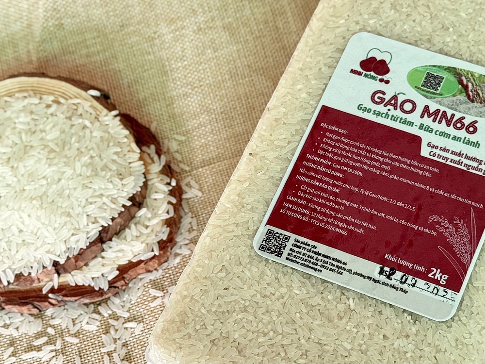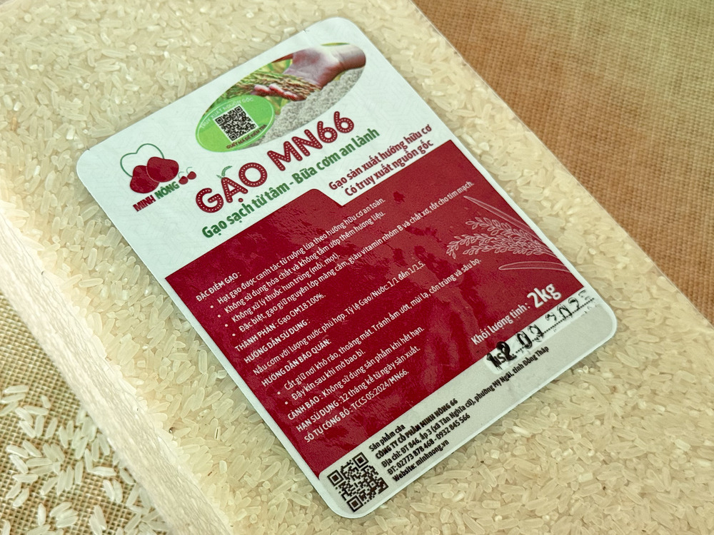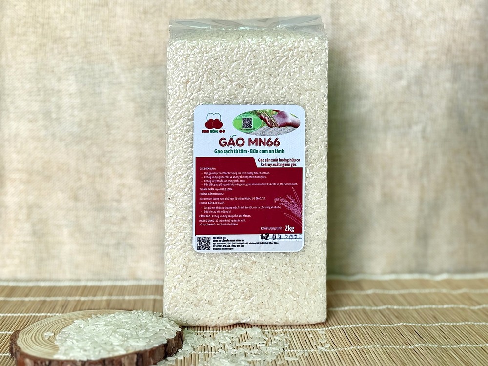 Gạo MN66 với thành phần 100% Gạo hữu cơ, được canh tác tự nhiên từ giống lúa OM18, chăm sóc bằng phân hữu cơ đạm cá sạch, giữ nguyên lớp cám gạo dinh dưỡng.