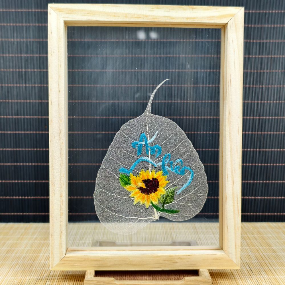 Vật liệu tự nhiên – thân thiện với môi trường: Sử dụng hoàn toàn lá thật, chỉ thêu và khung gỗ thân thiện, góp phần hướng đến lối sống xanh và bảo vệ nghề truyền thống Việt Nam.
