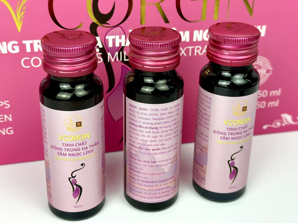 Tinh chất Đông Trùng Hạ Thảo và Sâm Ngọc Linh – VCORGIN là sản phẩm cao cấp từ công ty TNHH MTV ANestLand không chỉ tăng cường sức khỏe mà còn giúp ngăn ngừa lão hóa và cải thiện làn da.