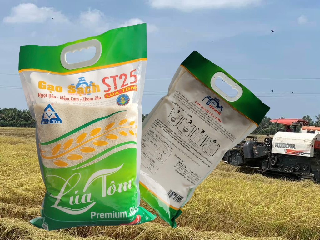 Gạo Điền Tín ST25 Lúa Tôm 5 Kg - Gạo Sạch Ngọt Dẻo Mềm Cơm Thơm Dịu
