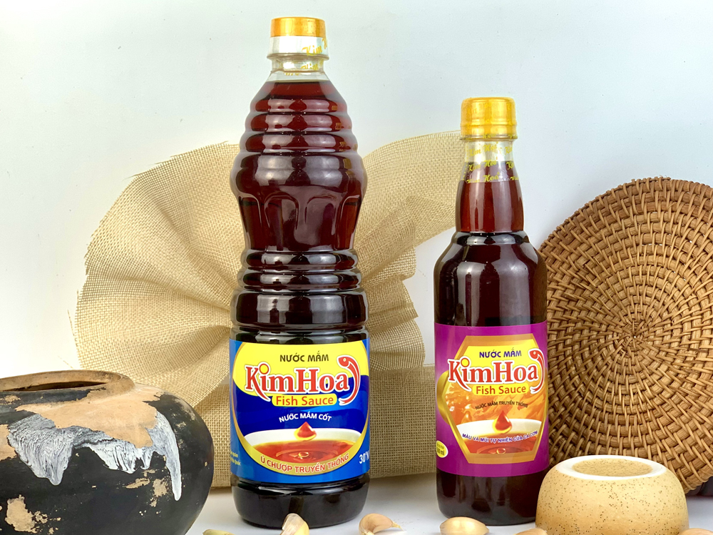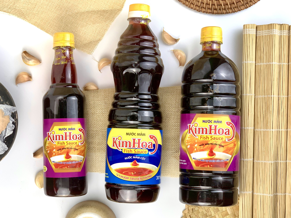 Nước mắm Kim Hoa là dòng nước mắm “Cốt” đặc biệt được ủ chượp theo phương pháp truyền thống với nguồn nguyên liệu là cá cơm thiên nhiên đến từ vùng biển Phú Quốc. Từng giọt nước mắm Kim Hoa đã được chắt lọc ra từ những nguồn nguyên liệu tốt nhất, mang đến cho khách hàng một sản phẩm vừa kết hợp được sự tinh hoa của nước mắm truyền thống và những dưỡng chất sức khỏe mà sản phẩm mang lại. Nước mắm là mặt hàng được sử dụng rộng rãi trong các bữa ăn của gia đình Việt từ xưa đến nay.