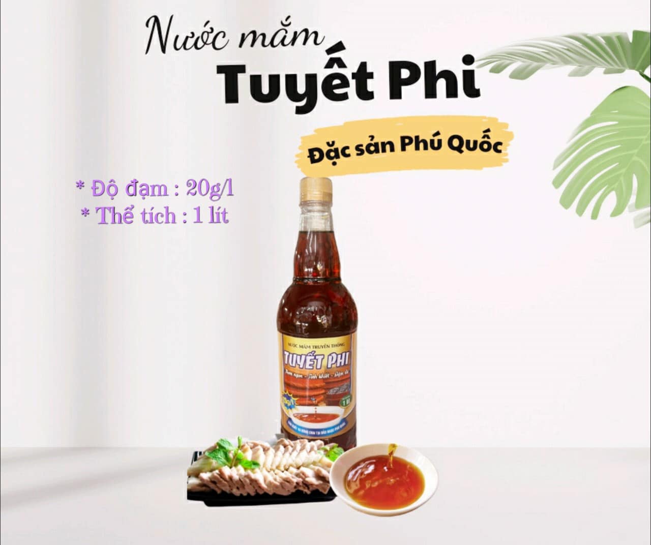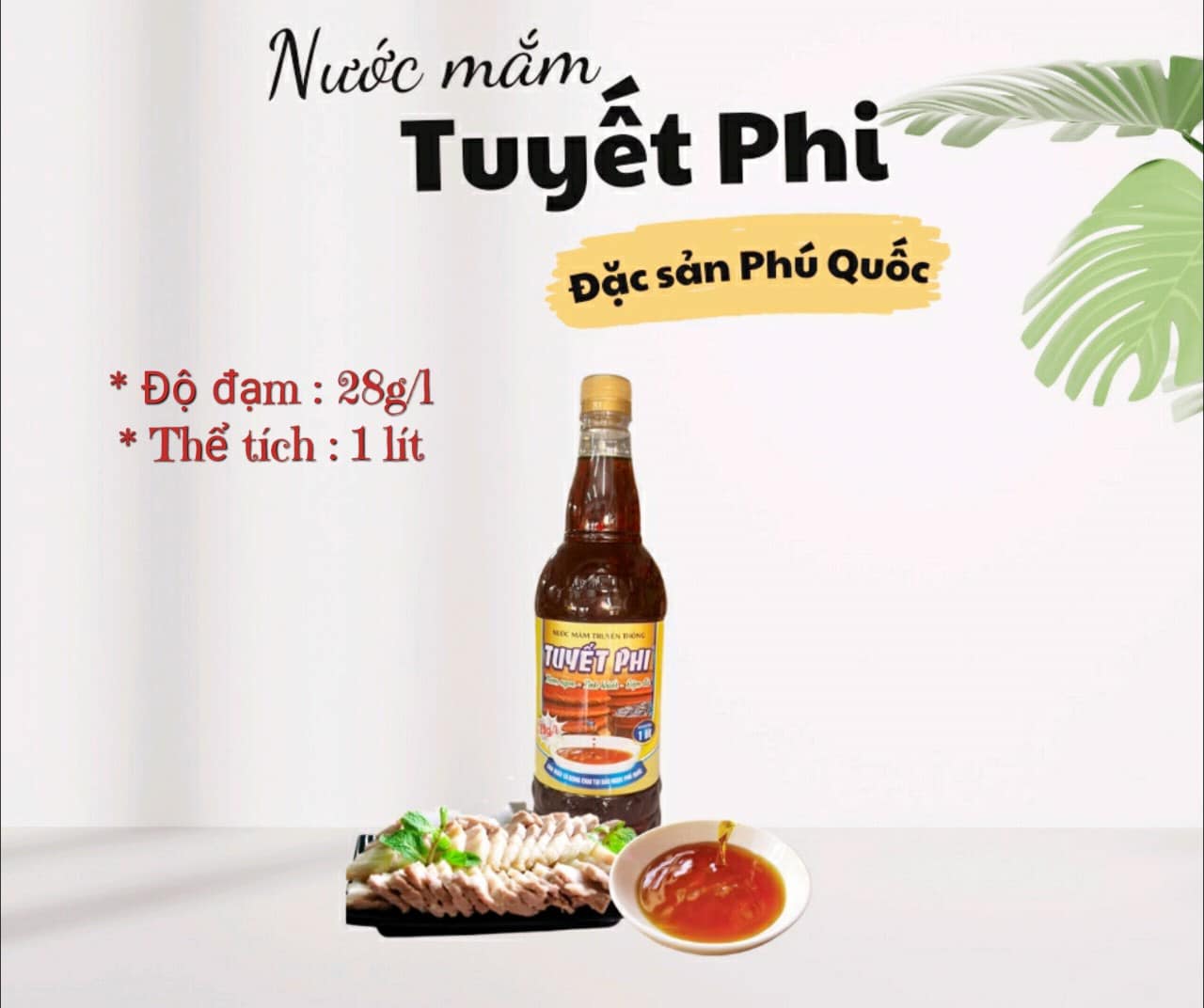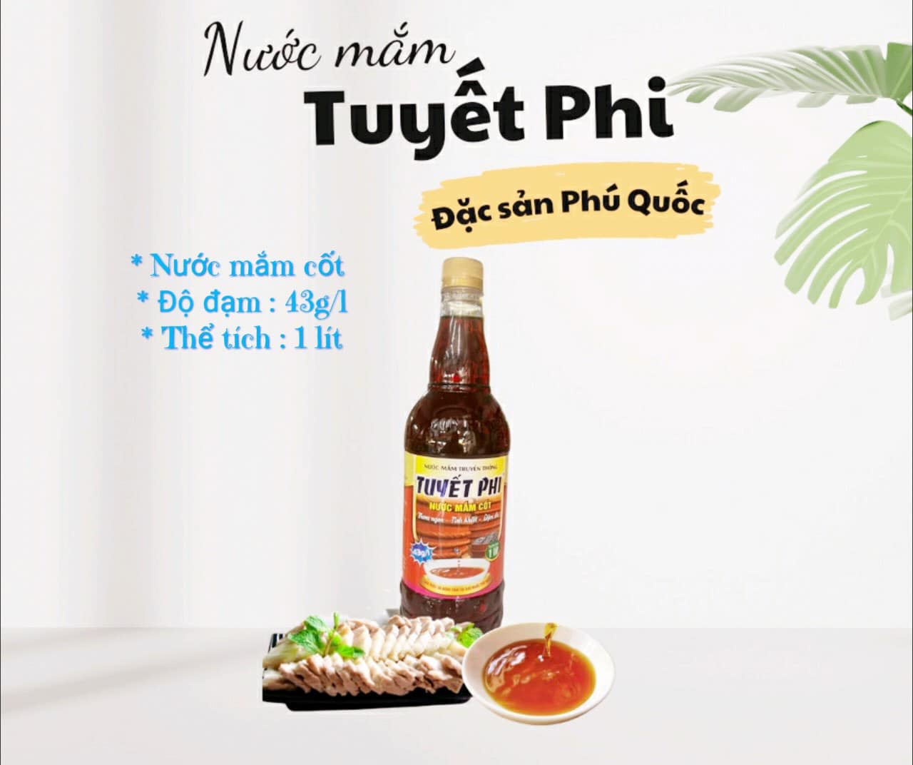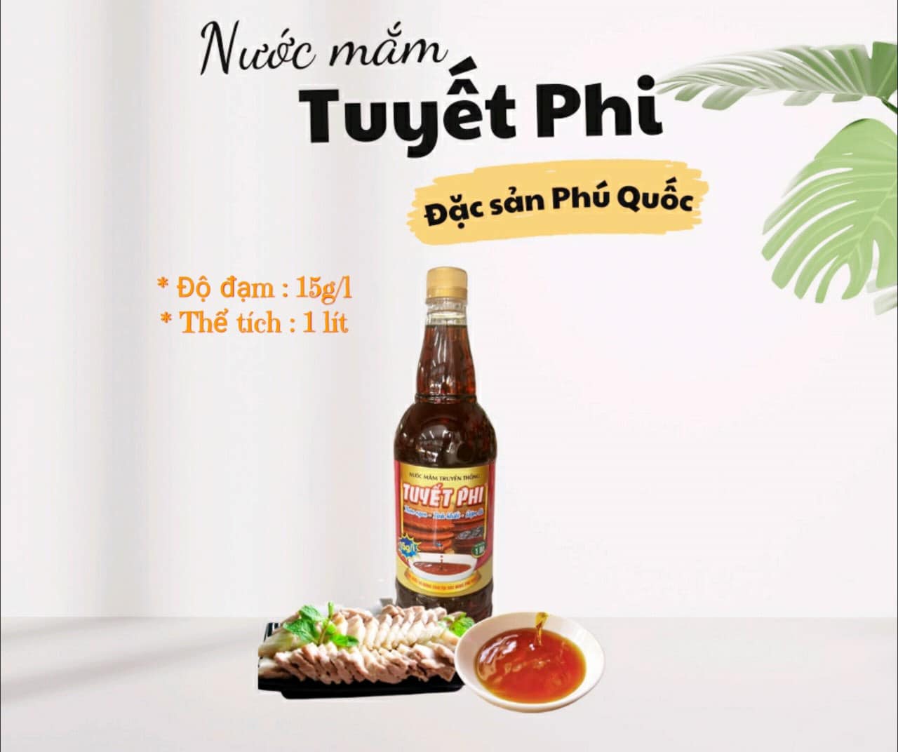 Nước mắm Tuyết Phi Phú Quốc là sản phẩm nổi tiếng được sản xuất trên đảo Phú Quốc, tỉnh Kiên Giang. Được làm từ cá cơm tươi, nước mắm Tuyết Phi Phú Quốc mang hương vị đặc trưng, đậm đà và không mặn gắt. Với độ đạm cao và quy trình sản xuất khép kín, sản phẩm đảm bảo chất lượng và an toàn vệ sinh thực phẩm. Nước mắm Tuyết Phi Phú Quốc đã được nhiều người tiêu dùng Việt Nam và quốc tế ưa chuộng, góp phần lan tỏa hình ảnh văn hóa ẩm thực Việt ra thế giới.