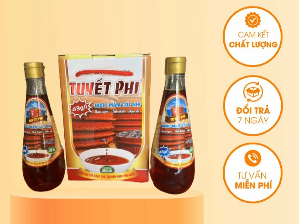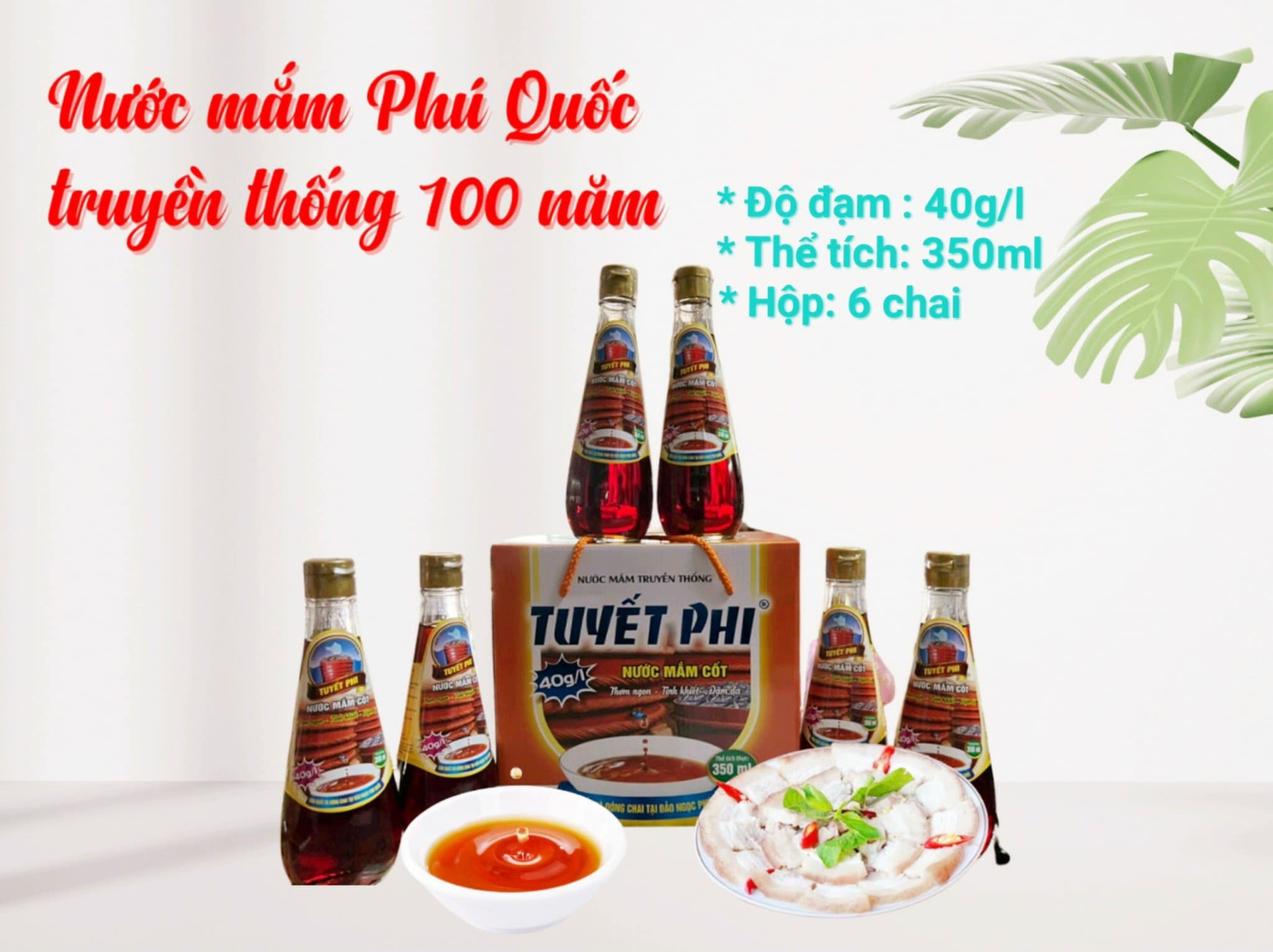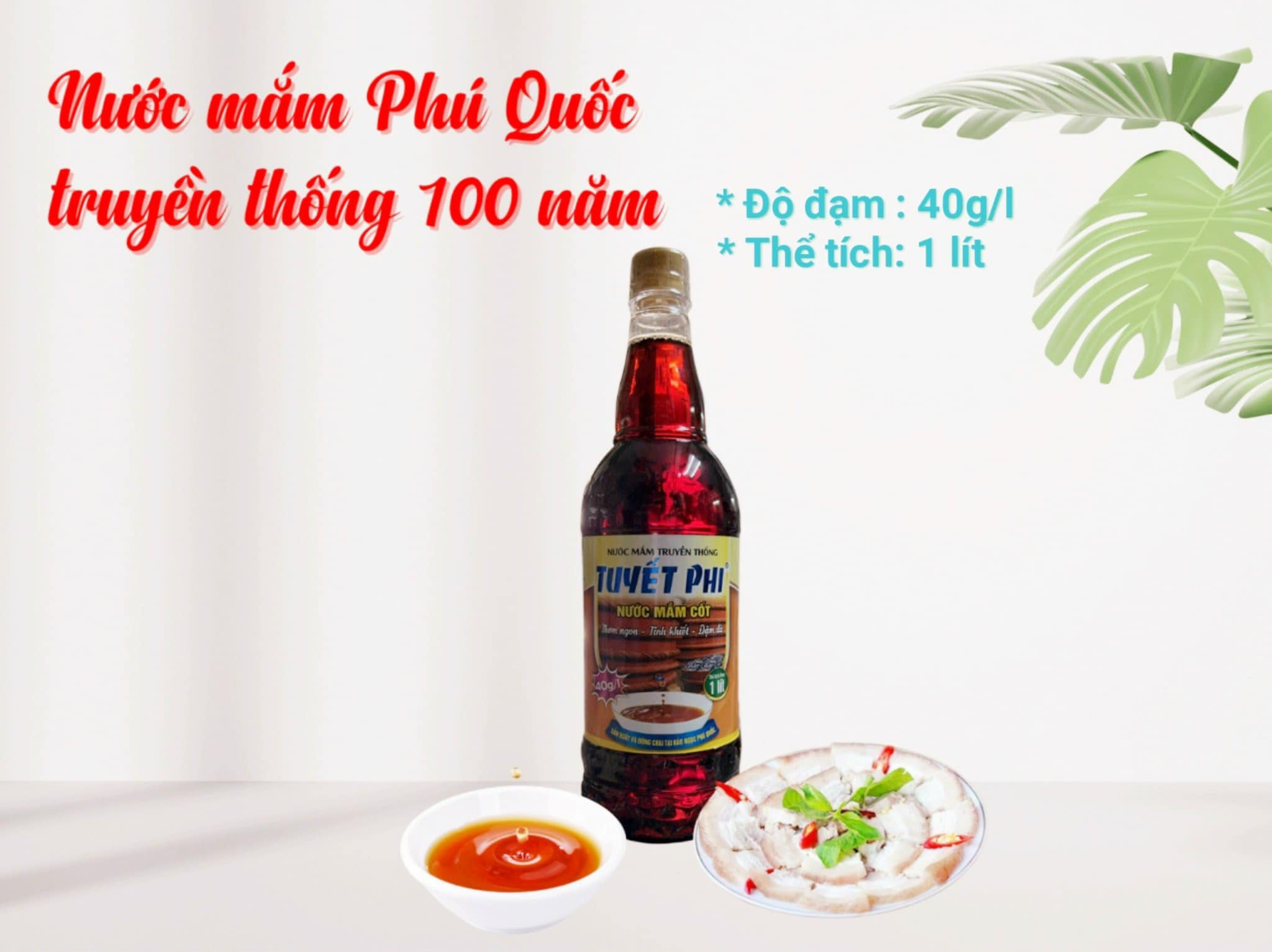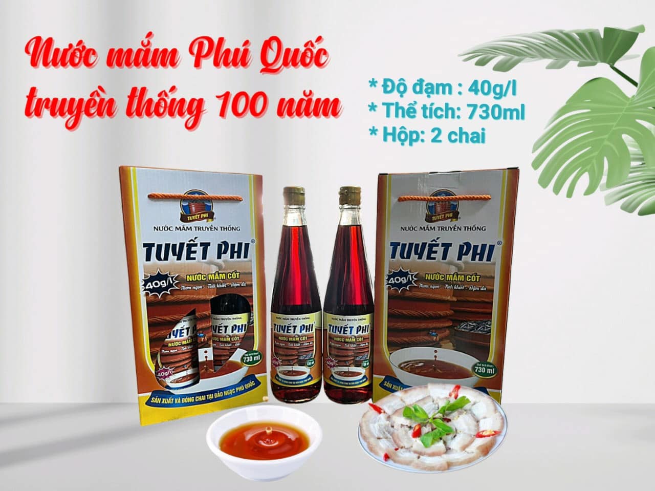 Nước mắm Tuyết Phi Phú Quốc là sản phẩm nổi tiếng được sản xuất trên đảo Phú Quốc, tỉnh Kiên Giang. Được làm từ cá cơm tươi, nước mắm Tuyết Phi Phú Quốc mang hương vị đặc trưng, đậm đà và không mặn gắt. Với độ đạm cao và quy trình sản xuất khép kín, sản phẩm đảm bảo chất lượng và an toàn vệ sinh thực phẩm. Nước mắm Tuyết Phi Phú Quốc đã được nhiều người tiêu dùng Việt Nam và quốc tế ưa chuộng, góp phần lan tỏa hình ảnh văn hóa ẩm thực Việt ra thế giới.