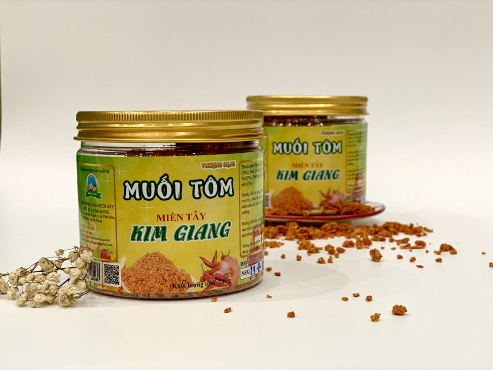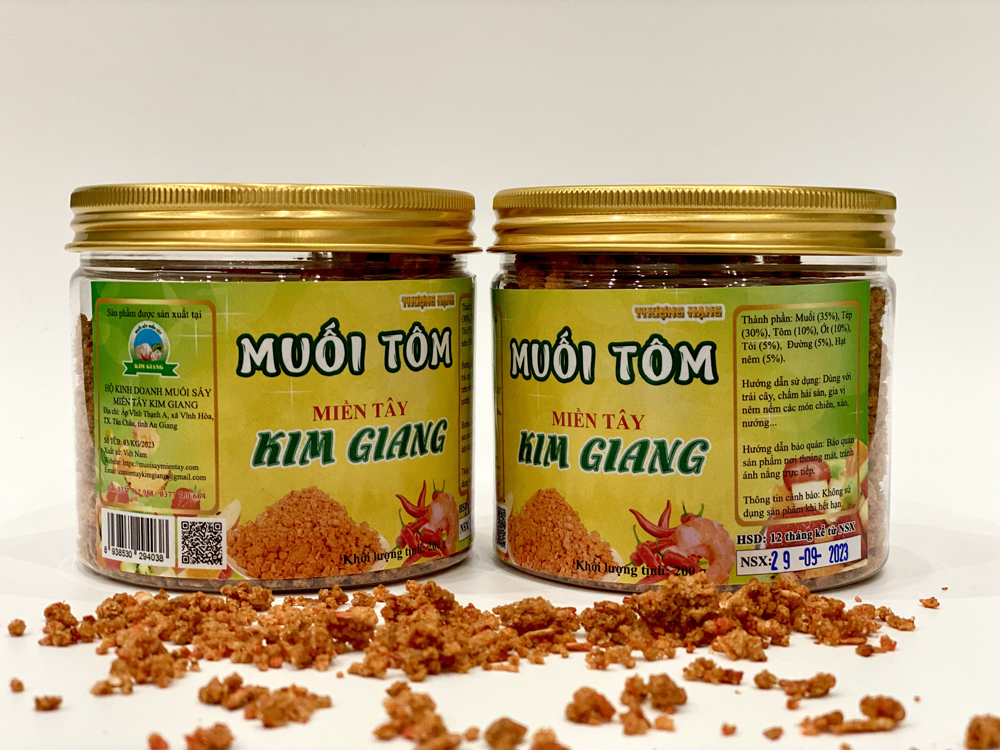 Muối tôm sấy miền Tây Kim Giang có thành phần từ muối, tôm, tép, tỏi, ớt, đường, hạt nêm. Đây là sản phẩm có mùi thơm đặc trưng, hương vị đậm đà, ngọt ngon và có mùi thơm tự nhiên của tôm, hạt muối to, có màu sắc cam, khi nhìn vào vô cùng hấp dẫn. Sản phẩm còn phù hợp cho mọi lứa tuổi sử dụng. Ngoài ra, muối tôm sấy miền Tây Kim Giang còn có quy trình sản xuất đảm bảo an toàn vệ sinh thực phẩm, không chất bảo quản, không phẩm màu, đảm bảo chất lượng an toàn vệ sinh thực phẩm.