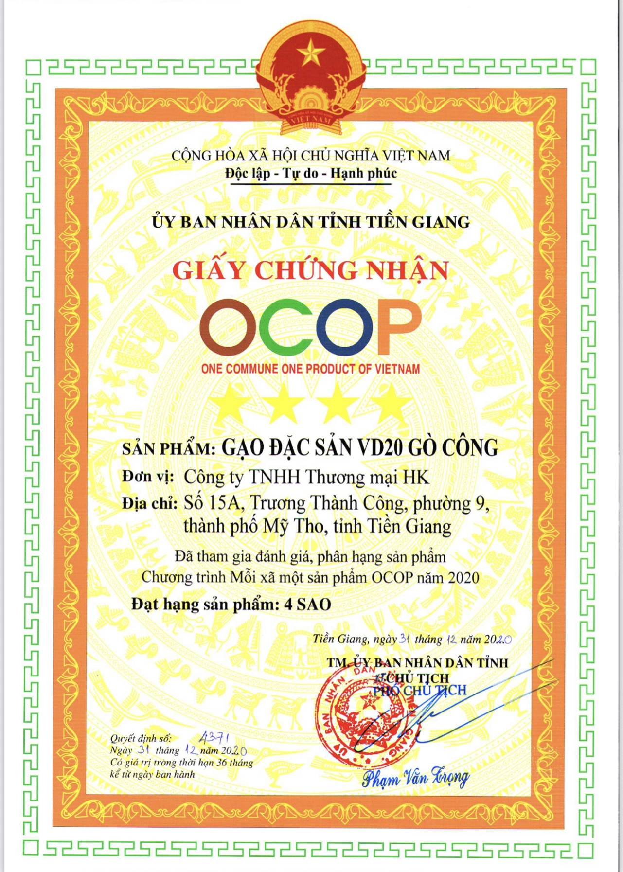 Gạo Đặc sản VD20 Gò Công HKG mang lại giá trị an toàn – chất lượng – bền vững, được canh tác theo hướng hữu cơ, không dư lượng thuốc BVTV, an toàn cho sức khỏe người tiêu dùng dưới sự giám sát của Công ty TNHH Thương mại HK.