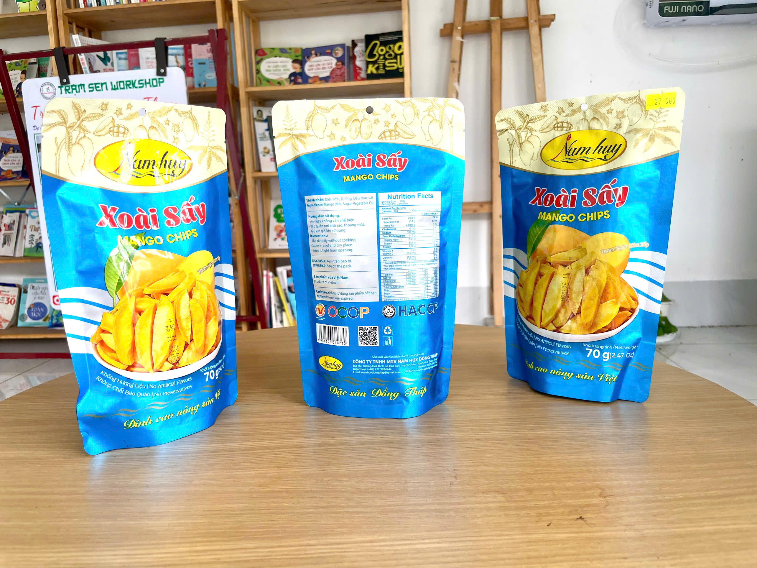 Xoài sấy Nam Huy là sản phẩm an toàn và hoàn toàn không sử dụng hóa chất và phụ gia thực phẩm. Sản phẩm được sản xuất trên dây chuyền sấy hiện đại, miếng xoài vẫn giữ được hương vị tươi ngon tự nhiên, giúp giữ trọn hương vị tự nhiên mang lại cảm giác giòn xốp cực ngon khi sử dụng, lại vừa tốt cho sức khỏe. Xoài sấy là một sản phẩm cô đặc các chất dinh dưỡng màu sắc và hương vị của quả xoài tươi tự nhiên, tạo nên sản phẩm thơm ngon hấp dẫn, tiện lợi cho người tiêu dùng.