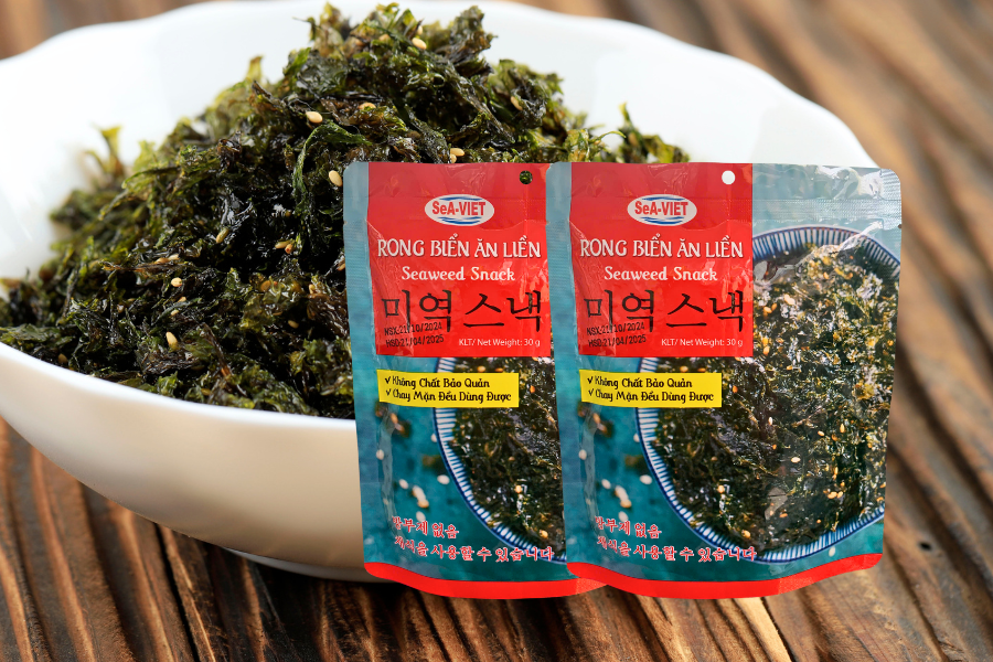 - Lưu ý: Đóng kín bao bì sau khi sử dụng để giữ cho sản phẩm luôn giòn và thơm ngon. Tránh để rong biển ở nơi có độ ẩm cao hoặc tiếp xúc trực tiếp với ánh nắng mặt trời.