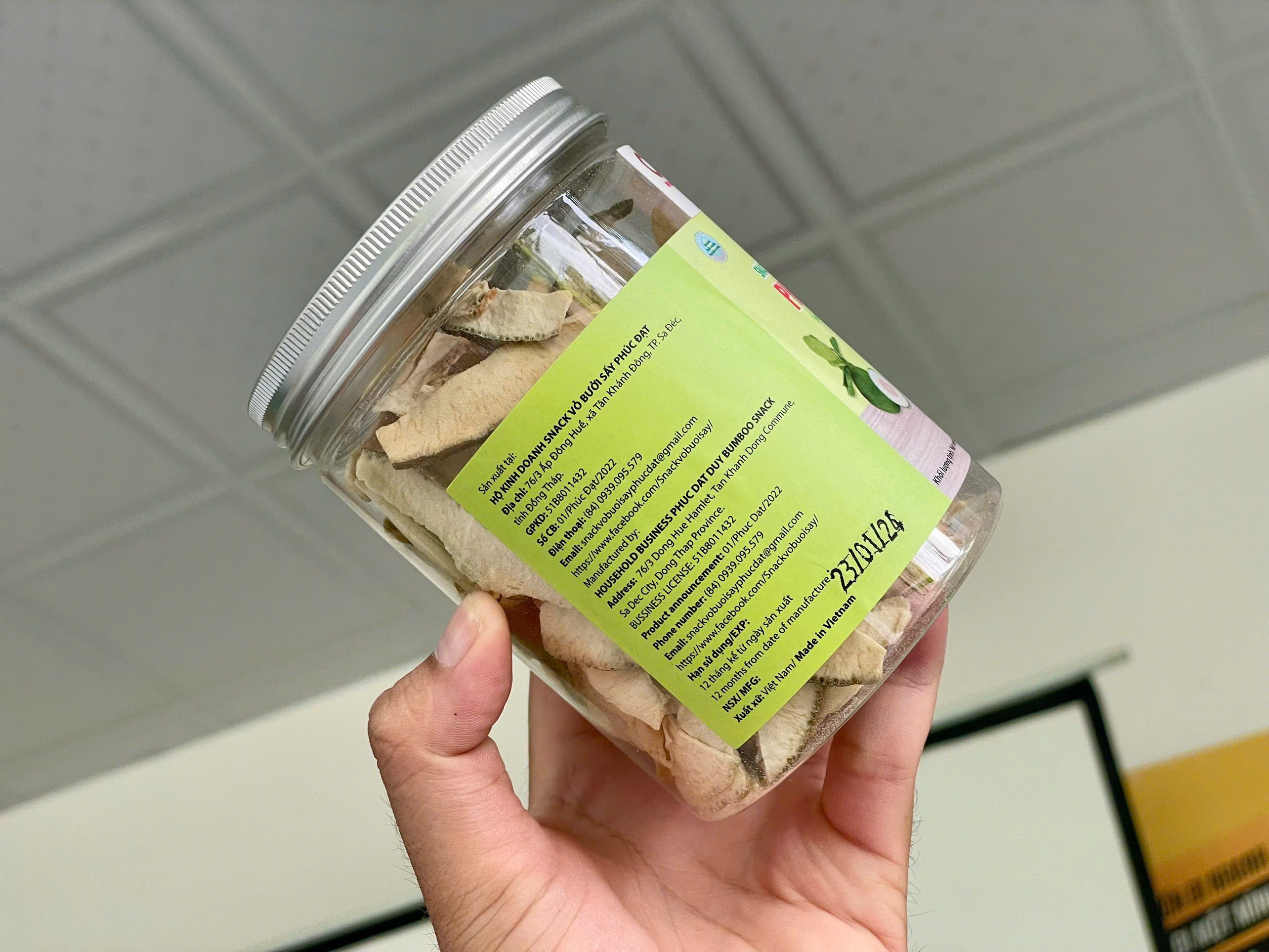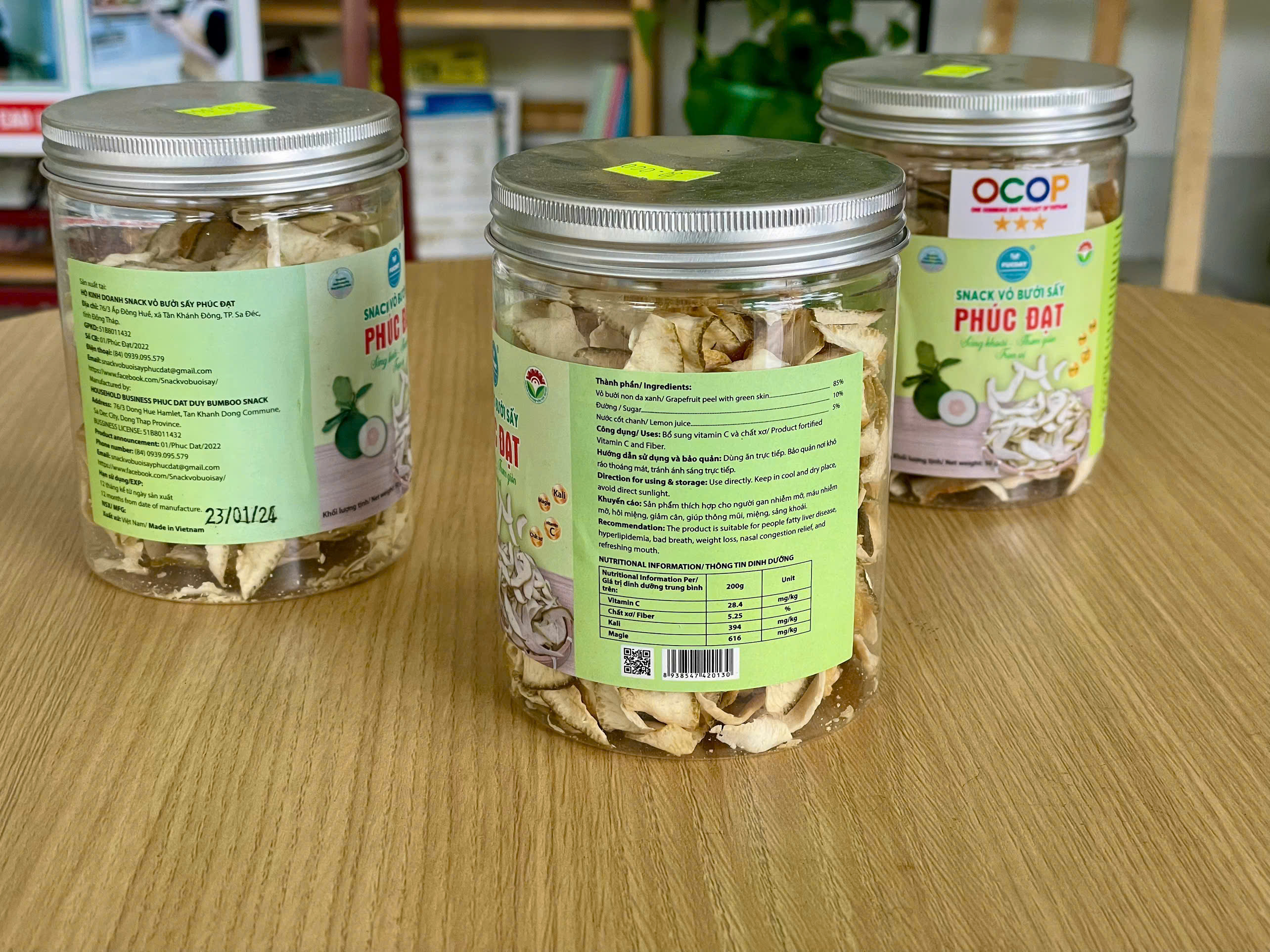 Snack Vỏ Bưởi Sấy là một sản phẩm ăn vặt tự nhiên, được chế biến từ vỏ bưởi tươi qua quy trình sấy khô, giữ nguyên hương vị tươi ngon và các dưỡng chất có trong vỏ bưởi. Sản phẩm này mang đến một lựa chọn ăn vặt lành mạnh, giàu vitamin C, chất xơ và các hợp chất chống oxy hóa, giúp tăng cường sức khỏe và làm đẹp da