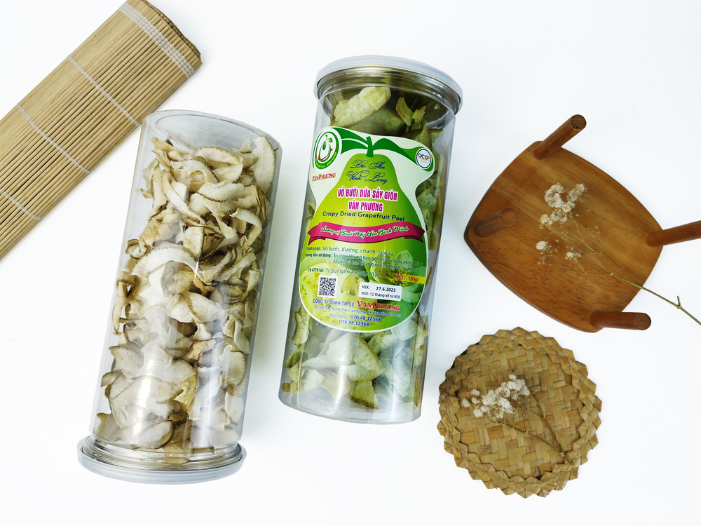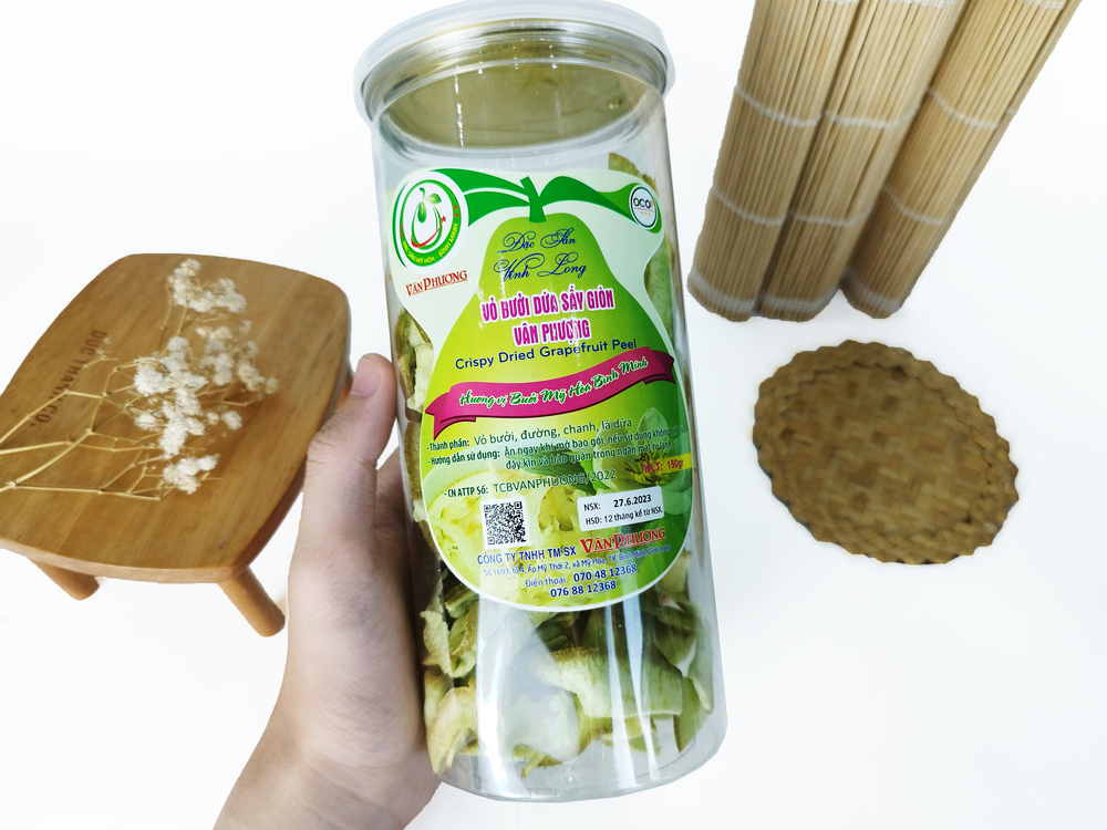 Vỏ bưởi sấy giòn là món ăn vặt độc đáo, thơm ngon và giàu dinh dưỡng, được chế biến từ phần vỏ bưởi tươi. Với công nghệ sấy hiện đại, vỏ bưởi giữ được hương vị đặc trưng, giòn tan cùng vị ngọt dịu, hơi the the của nước cốt chanh.