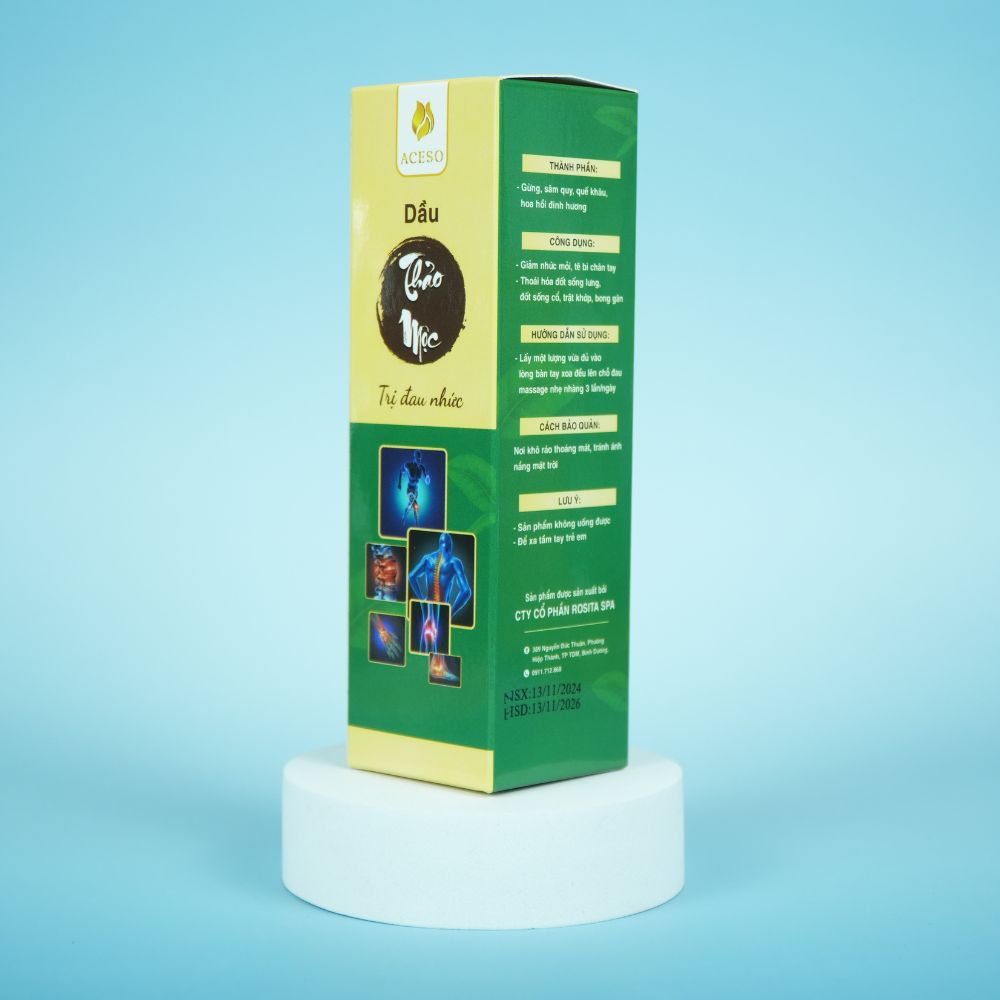 Trong cuộc sống hiện đại, áp lực công việc, ngồi lâu trước máy tính, vận động sai tư thế hoặc tuổi tác là những nguyên nhân chính gây ra tình trạng đau mỏi, nhức xương khớp và cơ bắp. Dầu thảo mộc Aceso chính là lựa chọn lý tưởng cho những ai đang tìm kiếm một giải pháp an toàn, hiệu quả và có nguồn gốc từ tự nhiên. Với hương thơm dễ chịu từ các loại thảo mộc như gừng, ngải diệp, hoa hồi, quế chi..., sản phẩm không chỉ giúp giảm đau nhanh chóng mà còn mang lại cảm giác thư giãn tinh thần, hỗ trợ cải thiện chất lượng giấc ngủ và nâng cao chất lượng cuộc sống.