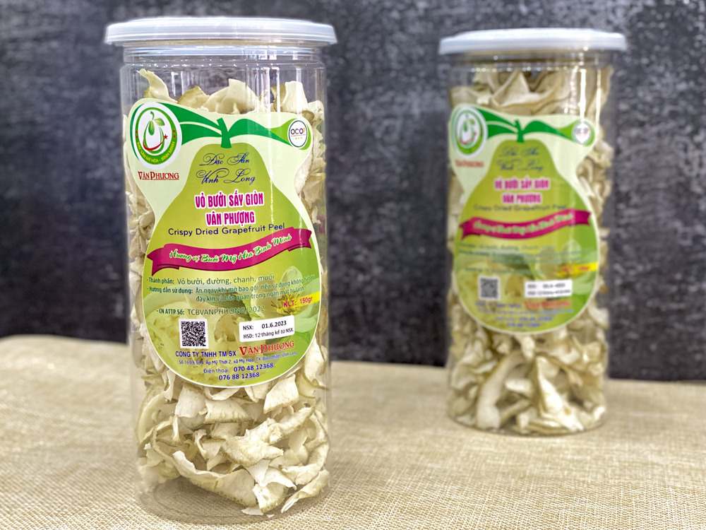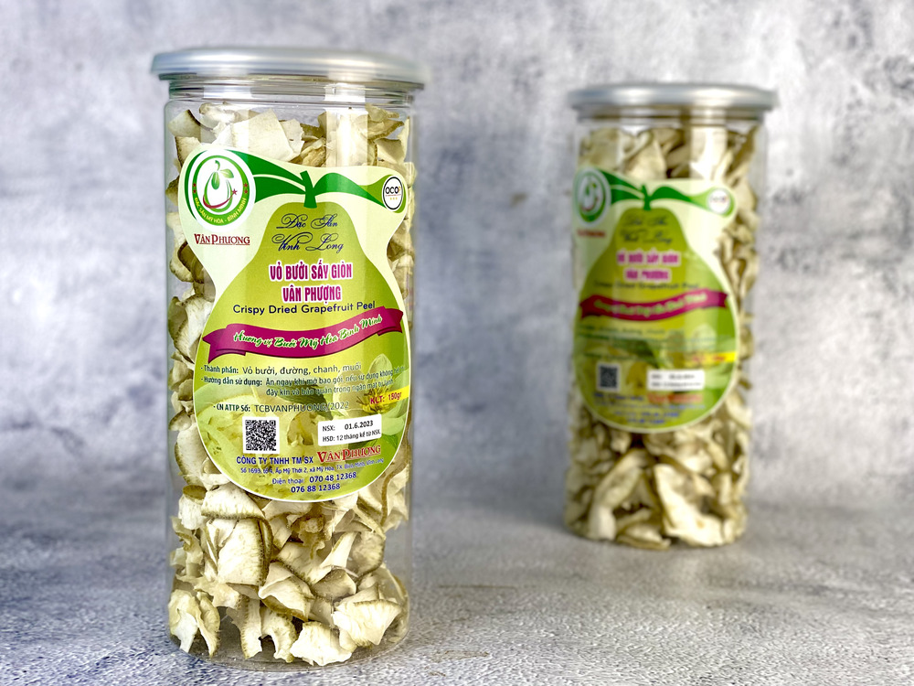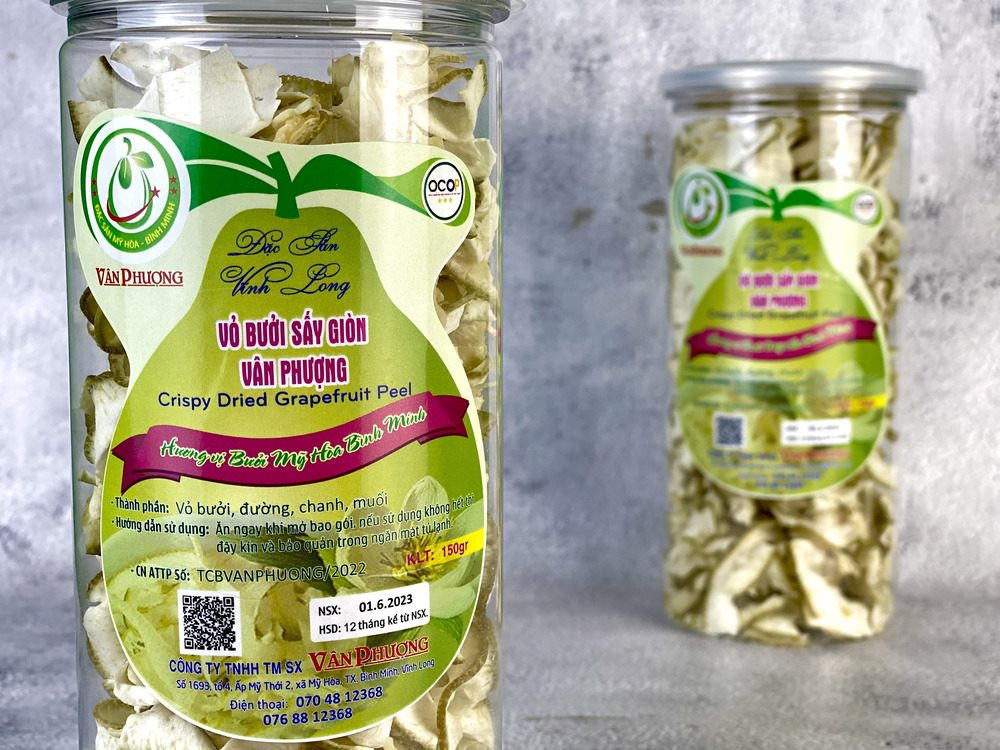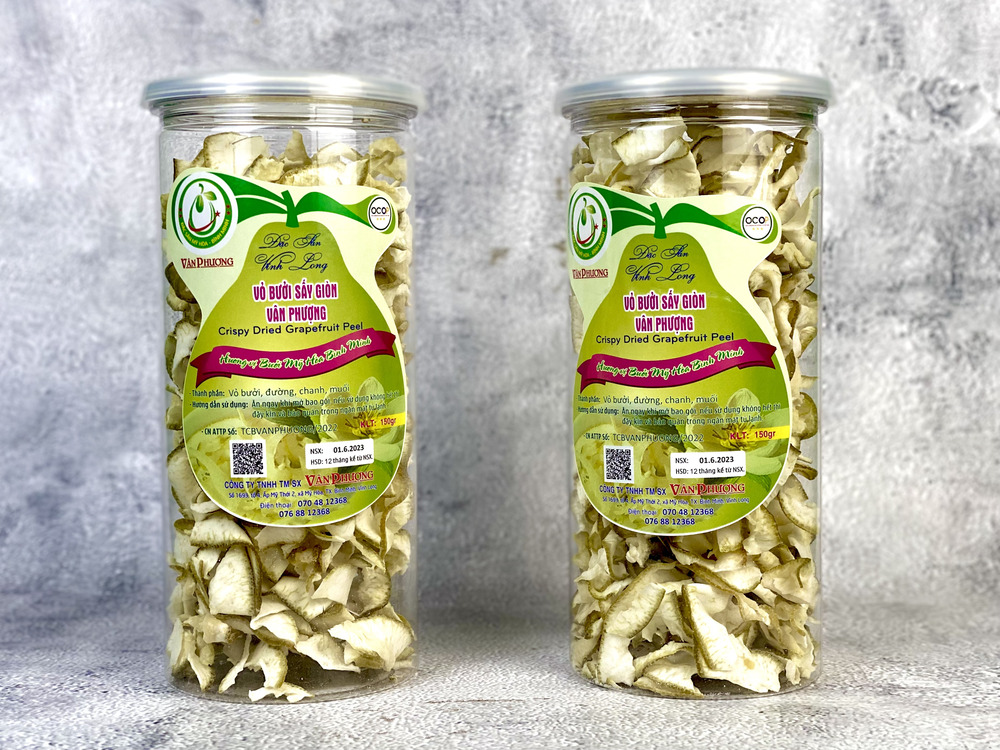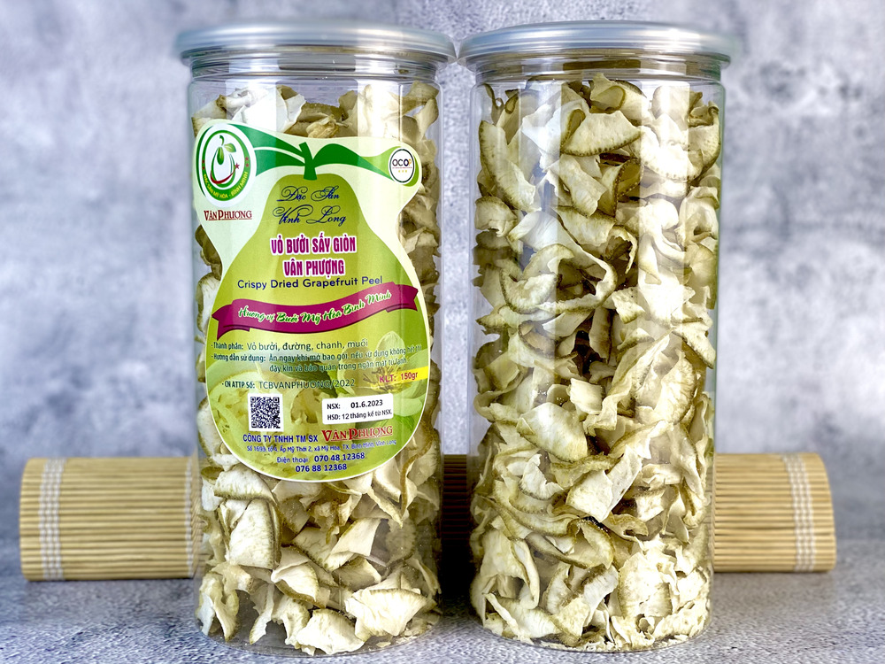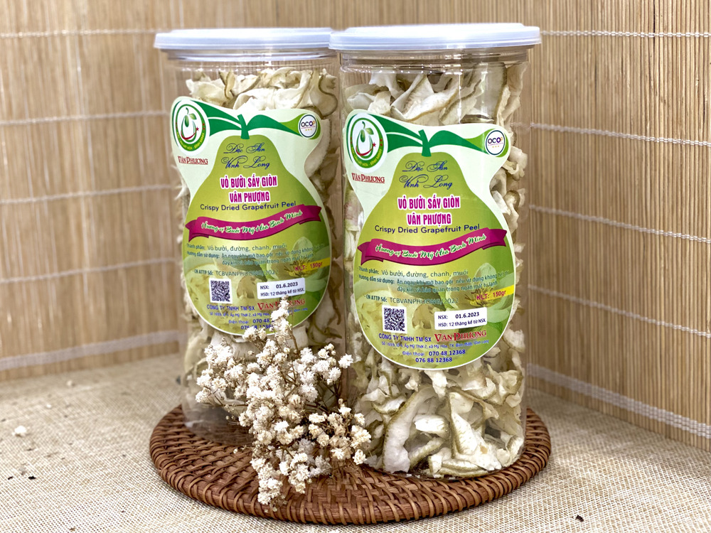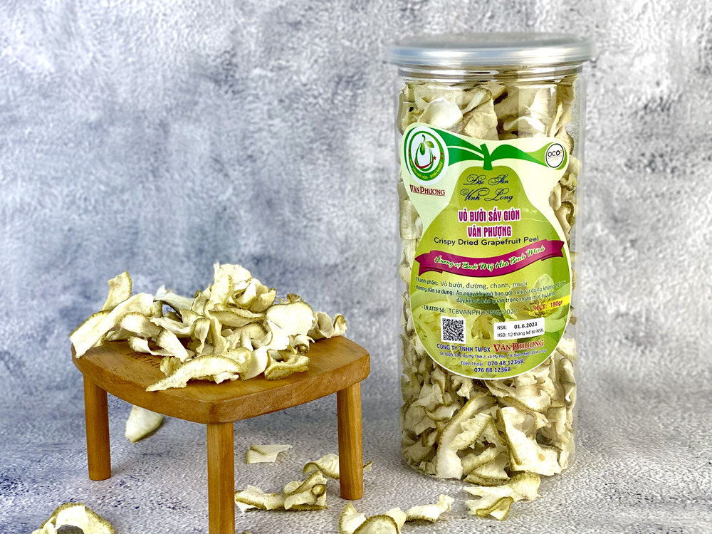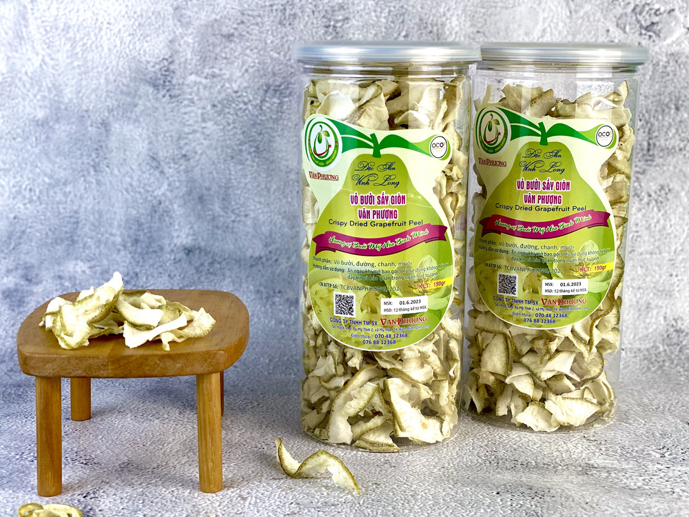 Vỏ bưởi sấy giòn cơ sở Vân Phượng là một trong những thương hiệu được yêu thích nhờ chất lượng và hương vị đặc trưng. Sản phẩm được chế biến từ vỏ bưởi tươi, sấy giòn tự nhiên, giữ nguyên hương thơm dịu nhẹ và độ giòn tan hấp dẫn. Nguyên liệu vỏ bưởi được chọn lọc kỹ càng, đặc biệt là không chất bảo quản, kết hợp cùng với công nghệ sấy hiện đại tạo nên độ giòn tự nhiên, cùng độ chua the hấp dẫn sẽ khiến bạn ấn tượng ngay lần dùng đầu tiên.