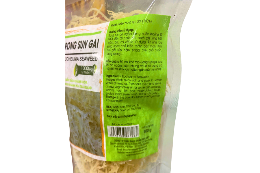 - Bảo quản: Để nơi khô ráo (rong sụn gai sau khi ngâm nước nhưng chưa sử dụng có thể để nơi khô ráo hoặc ngăn mát tủ lạnh).