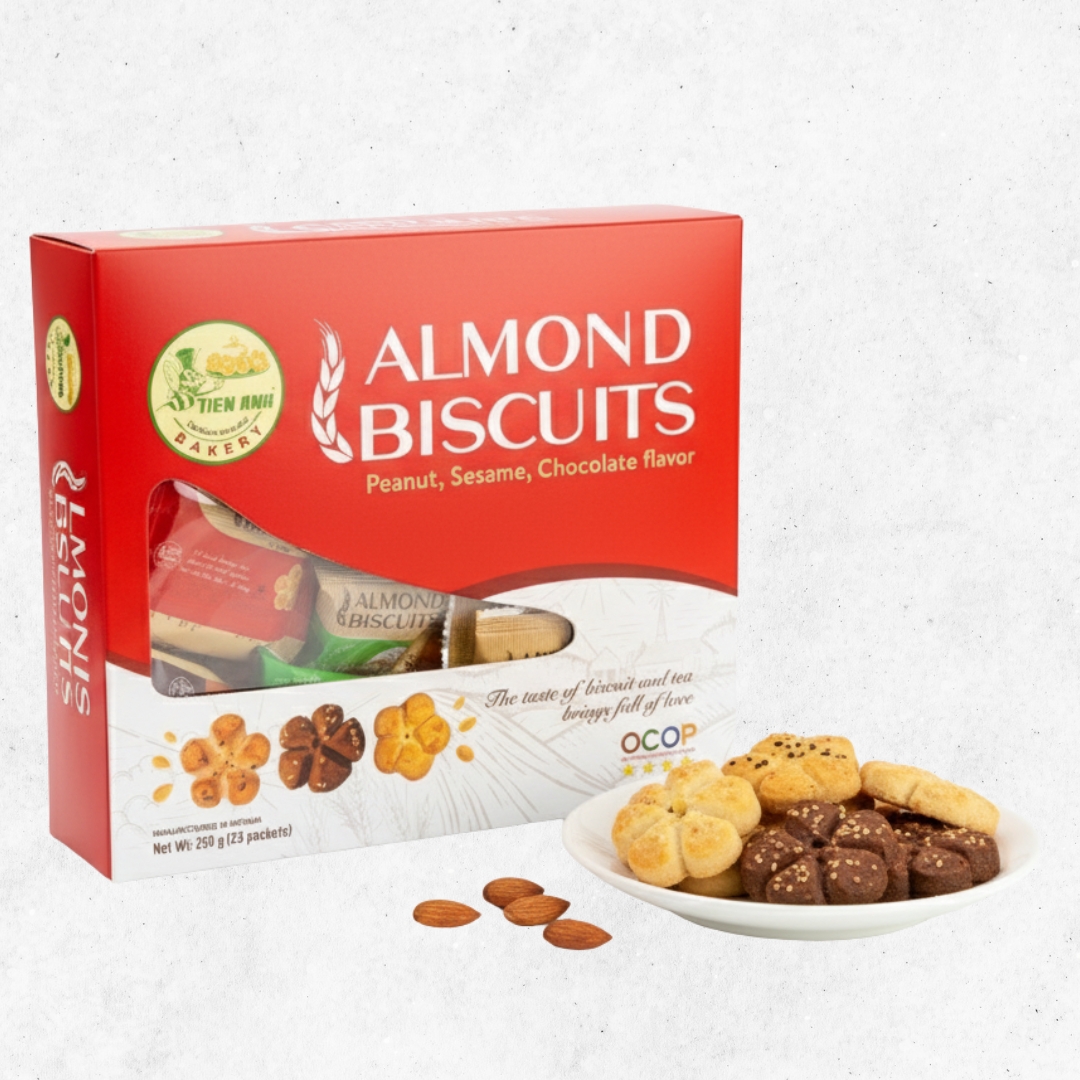 Bánh Hạnh Nhân Tiến Anh 250g – Đặc Sản Chợ Mới Thơm Ngon không chỉ là một món bánh, mà còn là niềm tự hào của An Giang. Từng chiếc bánh giòn tan, béo bùi, hòa quyện hương vị hạnh nhân cùng mè, socola, đậu… mang đến trải nghiệm khó quên ngay từ lần đầu thưởng thức.