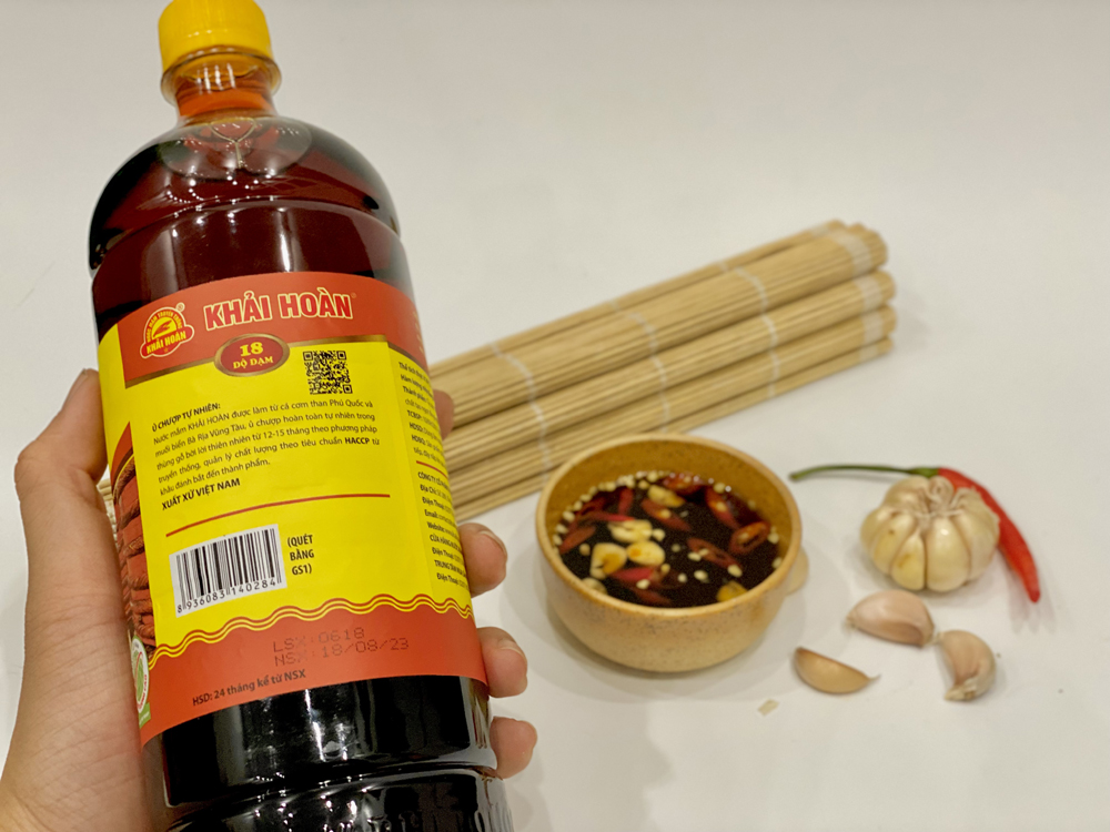Nước mắm Khải Hoàn là sự kết hợp giữa tinh hoa của cá cơm tươi và muối biển kết hợp phương pháp ủ chượp thủ công truyền thống. Sản phẩm không chỉ đậm đà, tăng hương vị cho món ăn mà còn có nhiều dưỡng chất mang đến nhiều lợi ích cho sức khỏe. Đó cũng là lý do nước mắm Khải Hoàn được nhiều người tin dùng và yêu thích.