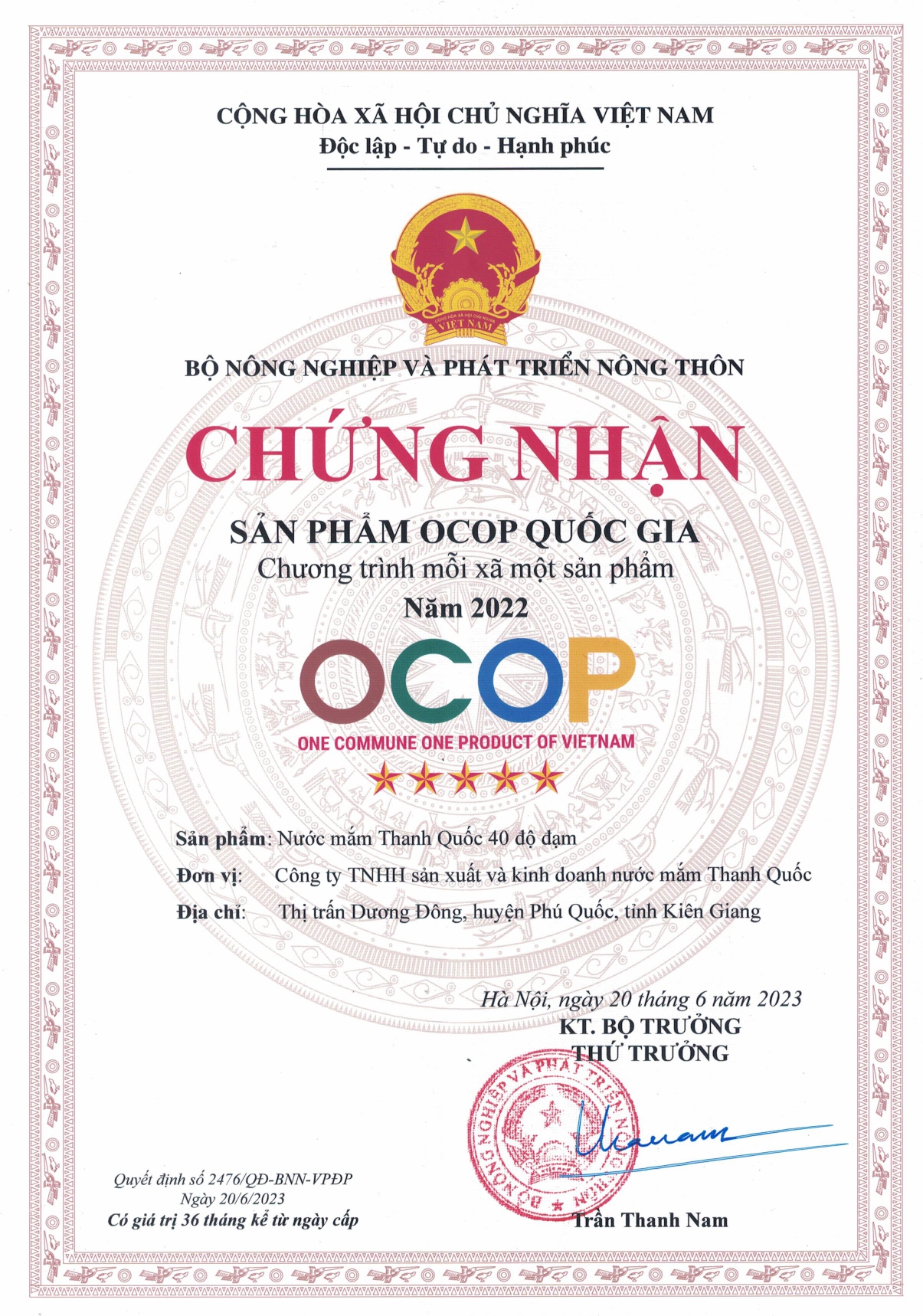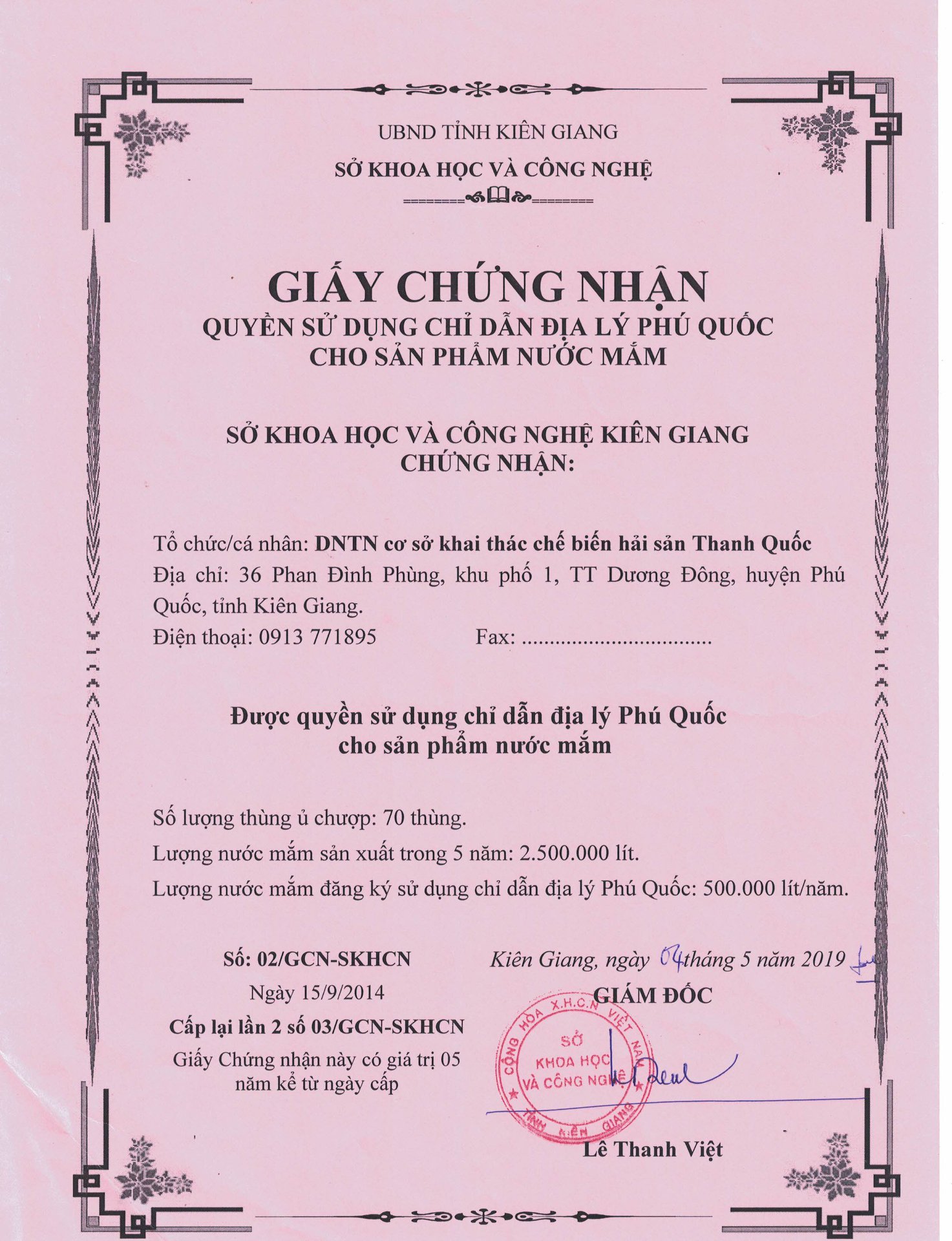 Với 50 năm kinh nghiệm, nước mắm Thanh Quốc tự hào tiên phong mang chỉ dẫn địa lý về với Phú Quốc.