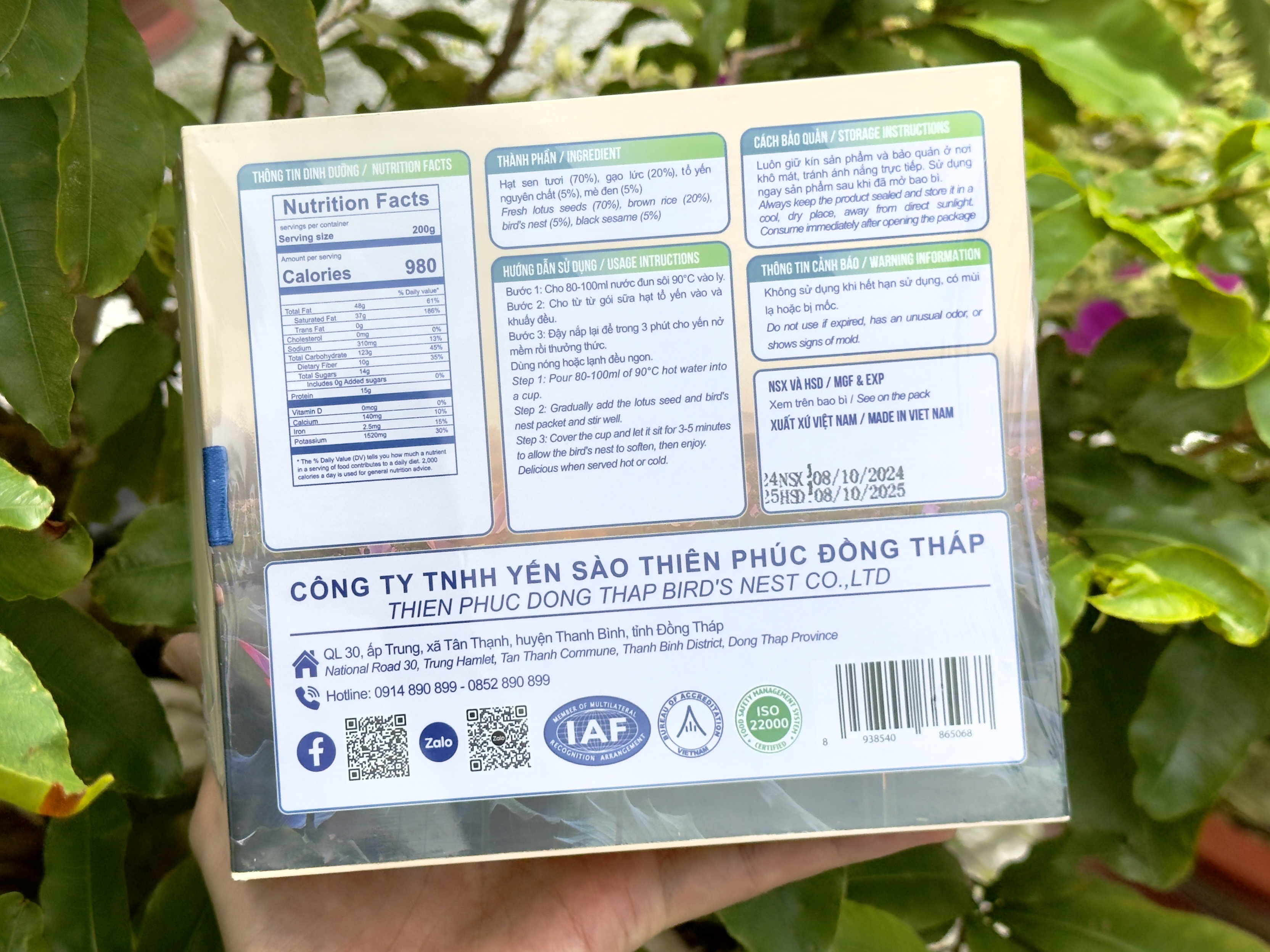 Sữa hạt tổ yến Thiên Gia Phúc là sản phẩm dinh dưỡng được sản xuất tại Đồng Tháp, vùng đất nổi tiếng với nguồn nguyên liệu thiên nhiên phong phú và an toàn. Sản phẩm được chế biến từ các nguyên liệu tự nhiên tạo nên thức uống bổ dưỡng, thơm ngon, dễ sử dụng hằng ngày để nâng cao sức khỏe và tăng cường sức đề kháng.