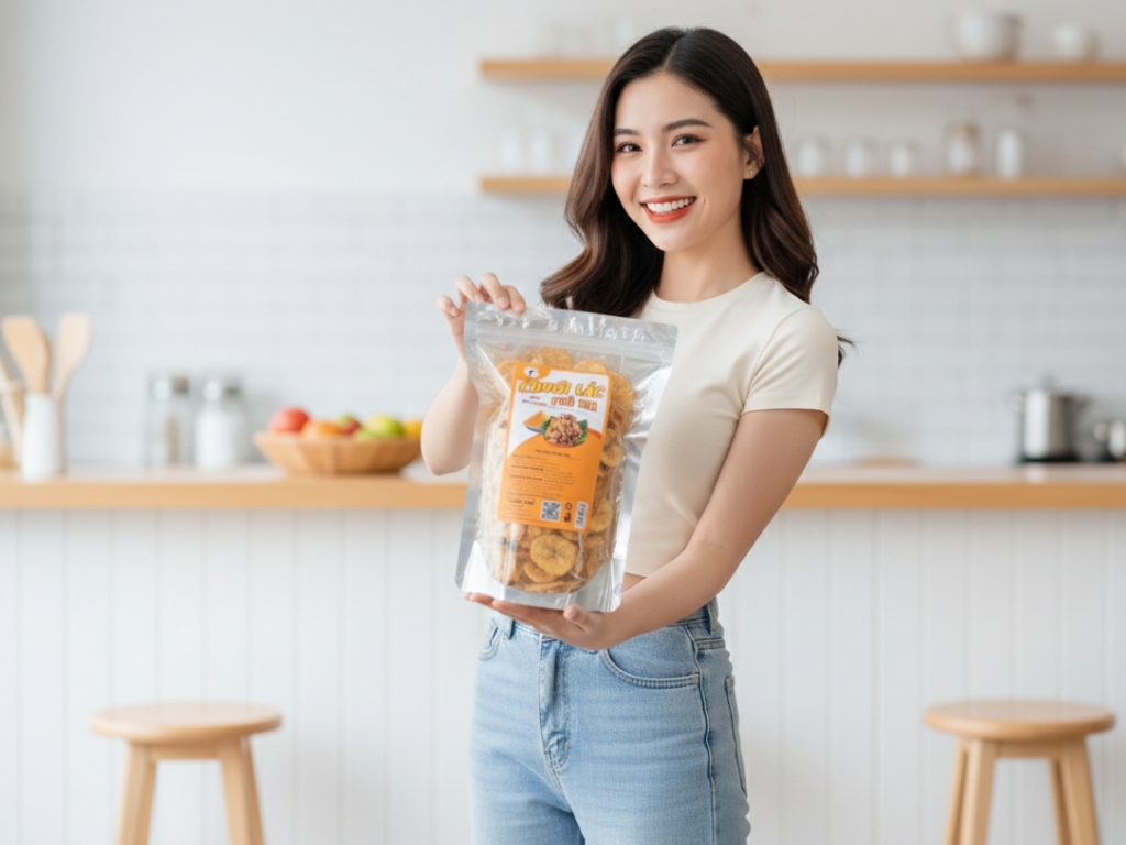 Chuối được tuyển chọn từ vùng nguyên liệu U Minh Thượng, sấy giòn tự nhiên, kết hợp cùng phô mai béo mịn, tạo nên hương vị hài hòa, ăn vừa miệng, không ngán.