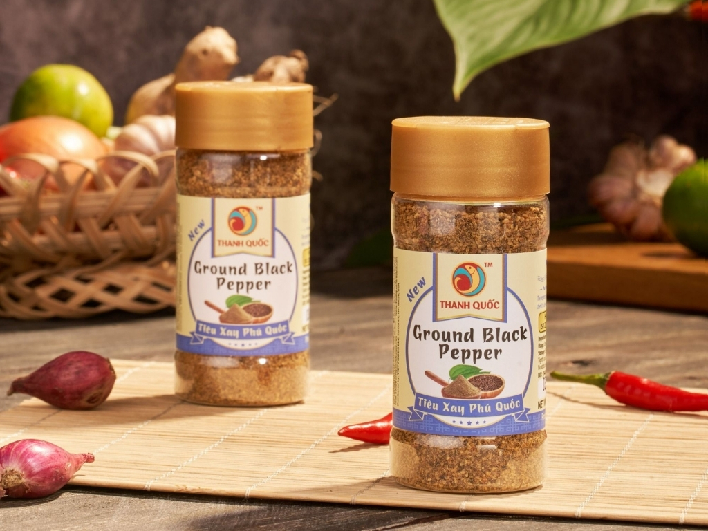 Tiêu Xay Phú Quốc Thanh Quốc 70g, 100% hạt tiêu nguyên chất, không chất bảo quản. Sản phẩm đạt chứng nhận OCOP 4 sao, mang hương vị cay nồng đặc trưng, là gia vị không thể thiếu trong bữa ăn Việt.
