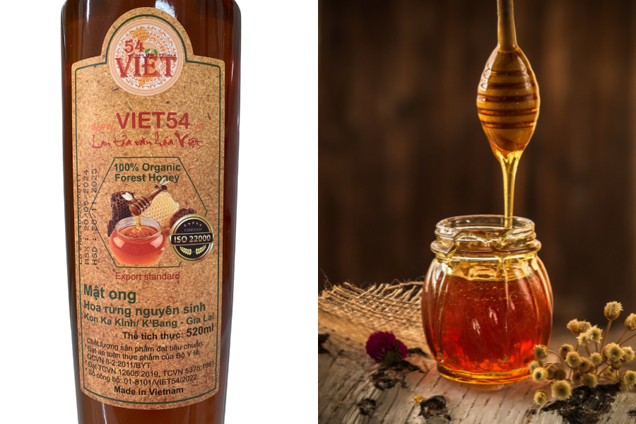 Mật ong rừng nguyên sinh Kon Ka Kinh/K’Bang được làm từ 100% mật ong rừng nguyên chất, không chứa bất kỳ phụ gia hay chất bảo quản nào. Mật ong được thu hoạch cẩn thận từ các tổ ong trong khu rừng nguyên sinh, đảm bảo giữ được hương vị tự nhiên và giá trị dinh dưỡng tối ưu.