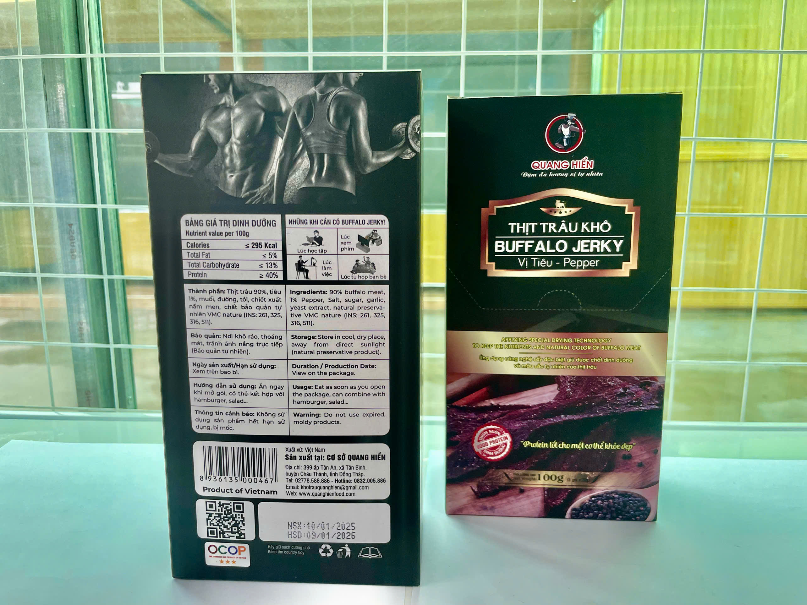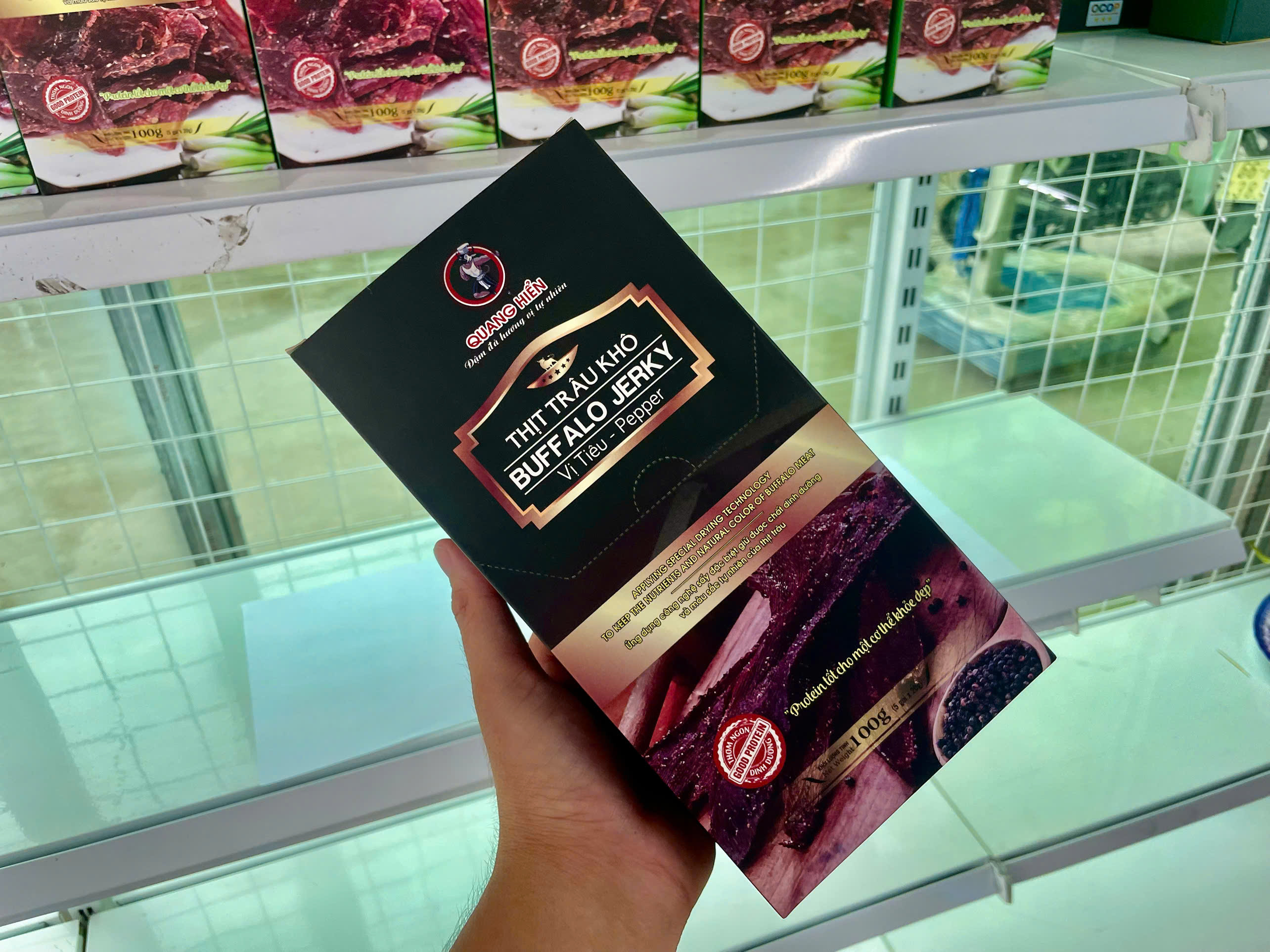 Không chỉ ngon mà còn đẹp mắt, Thịt Trâu Khô Vị Tiêu Quang Hiển được đóng gói tinh tế, đảm bảo an toàn vệ sinh thực phẩm, giúp bảo quản lâu mà không làm mất đi hương vị. Đây cũng là một món quà biếu sang trọng, ý nghĩa dành tặng người thân, bạn bè hay đối tác, thể hiện sự quan tâm chân thành.