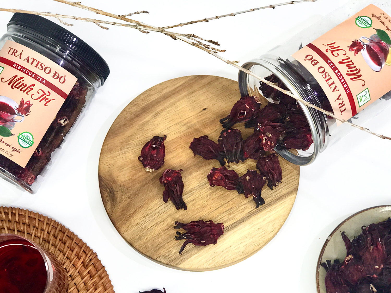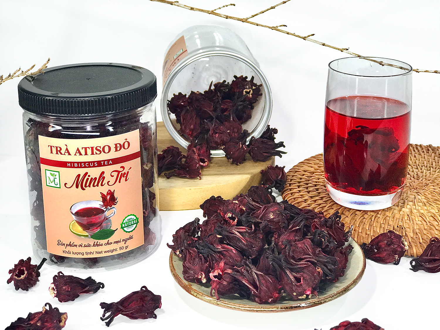 Trà hoa atiso đỏ có màu đỏ đặc trưng của hoa atiso, khi uống vào sẽ cảm thấy vị chua chua, chan chát, mùi thơm thoang thoảng của trà cứ bay quanh mũi. Vô cùng dễ uống và dễ sử dụng, lại còn là loại trà rất tốt cho sức khỏe, đặc biệt là gan, nó có thể giúp bạn giải độc gan vô cùng hiệu quả. Với thành phần 100% từ đài hoa atiso hái từ trên cây, trải qua quá trình làm sạch và sấy khô, tạo nên những bông hoa atiso dù đã được sấy khô nhưng vẫn giữ nguyên hình dáng. Bắt mắt và bắt vị chính là để tả thị giác và vị giác khi bạn trải nghiệm qua loại trà này, chắc chắn sẽ không thể nào quên được!