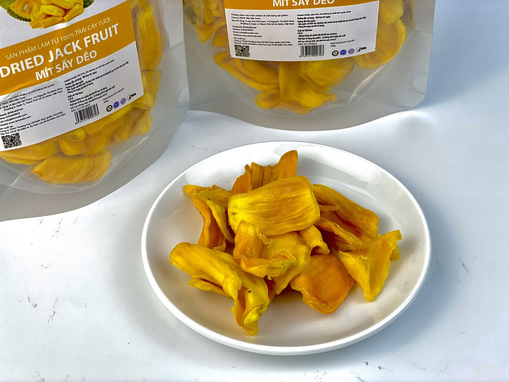 Sau khi thu hoạch sẽ được kiểm tra chất lượng và độ chín của quả, sau đó lột vỏ, tách thịt mít với hạt mít và đưa vào xử lý vệ sinh. Kế tiếp đưa vào buồng sấy gia nhiệt, cho ra sản phẩm Mít Sấy Dẻo với chất lượng sản phẩm được đảm bảo về độ mềm, dẻo vừa ăn.
