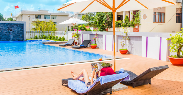 thoáng rộng giữa không gian xanh mát, có hệ thống thay nước và khử trùng mỗi ngày. Đặc biệt có trang bị phao bơi dành cho các bé.