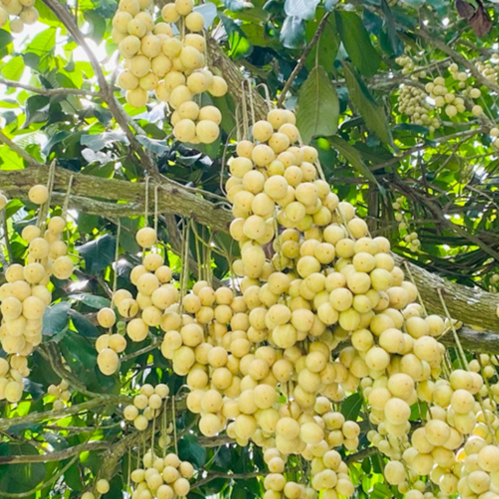 Những trái vú sữa chín mọng, to tròn lủng lẳng trên cành vô cùng thích mắt.